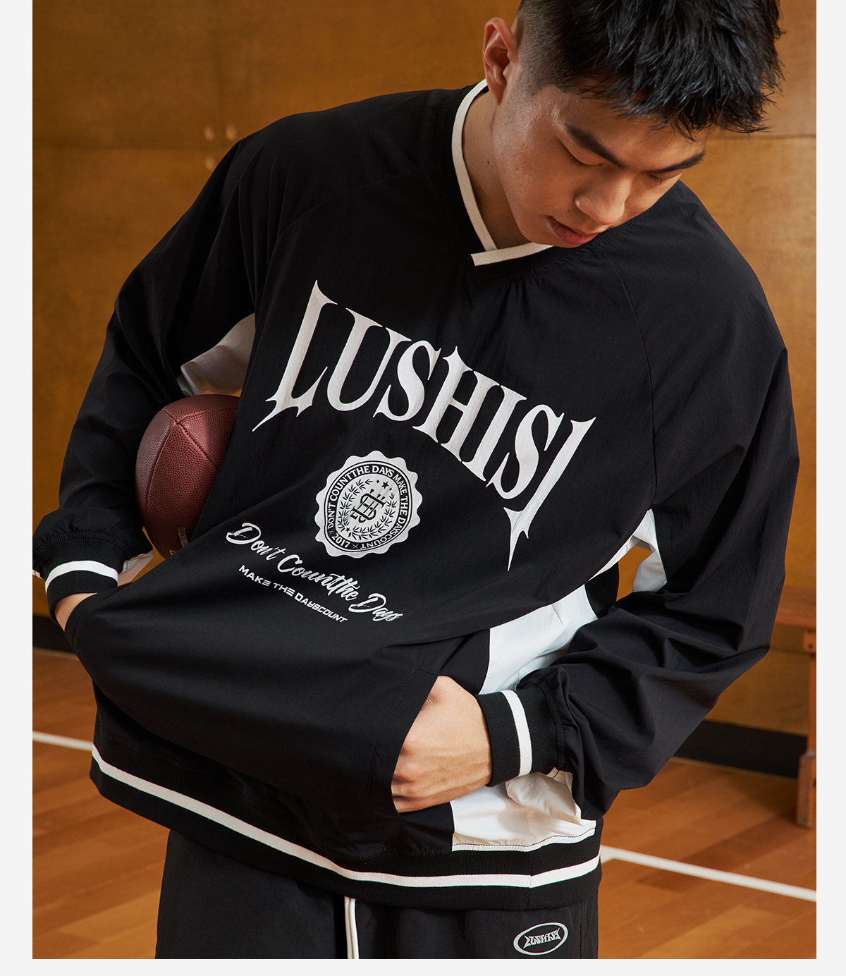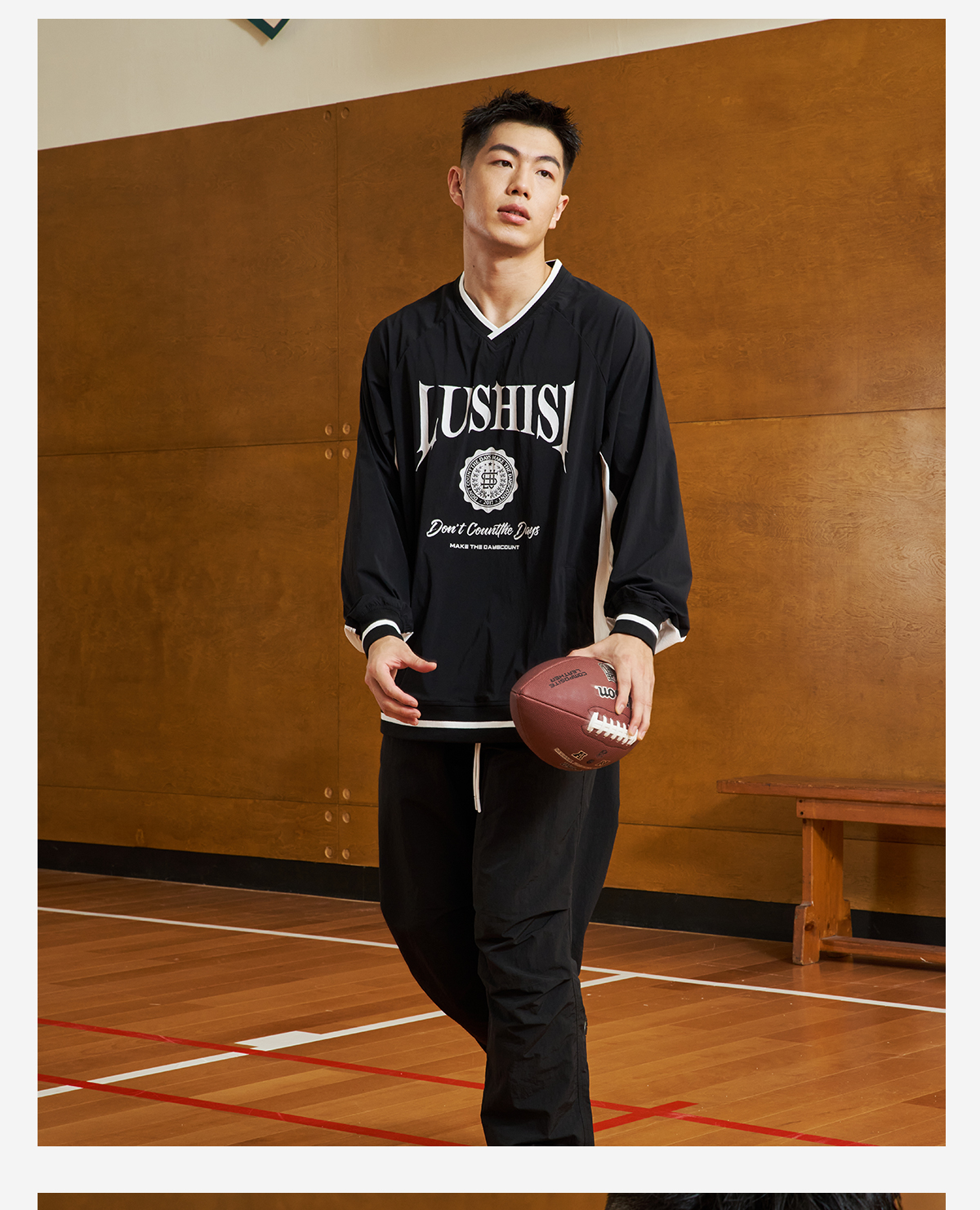 录士LUSHISI热能量篮球长袖半拉链运动卫衣男保暖休闲潮宽松上衣