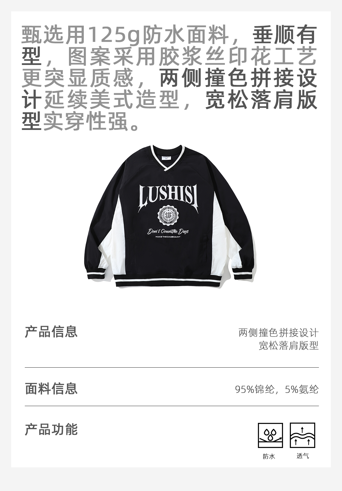 LUSHISI【校园复古】主题美式休闲长袖薄款卫衣户外休闲肌理款秋款