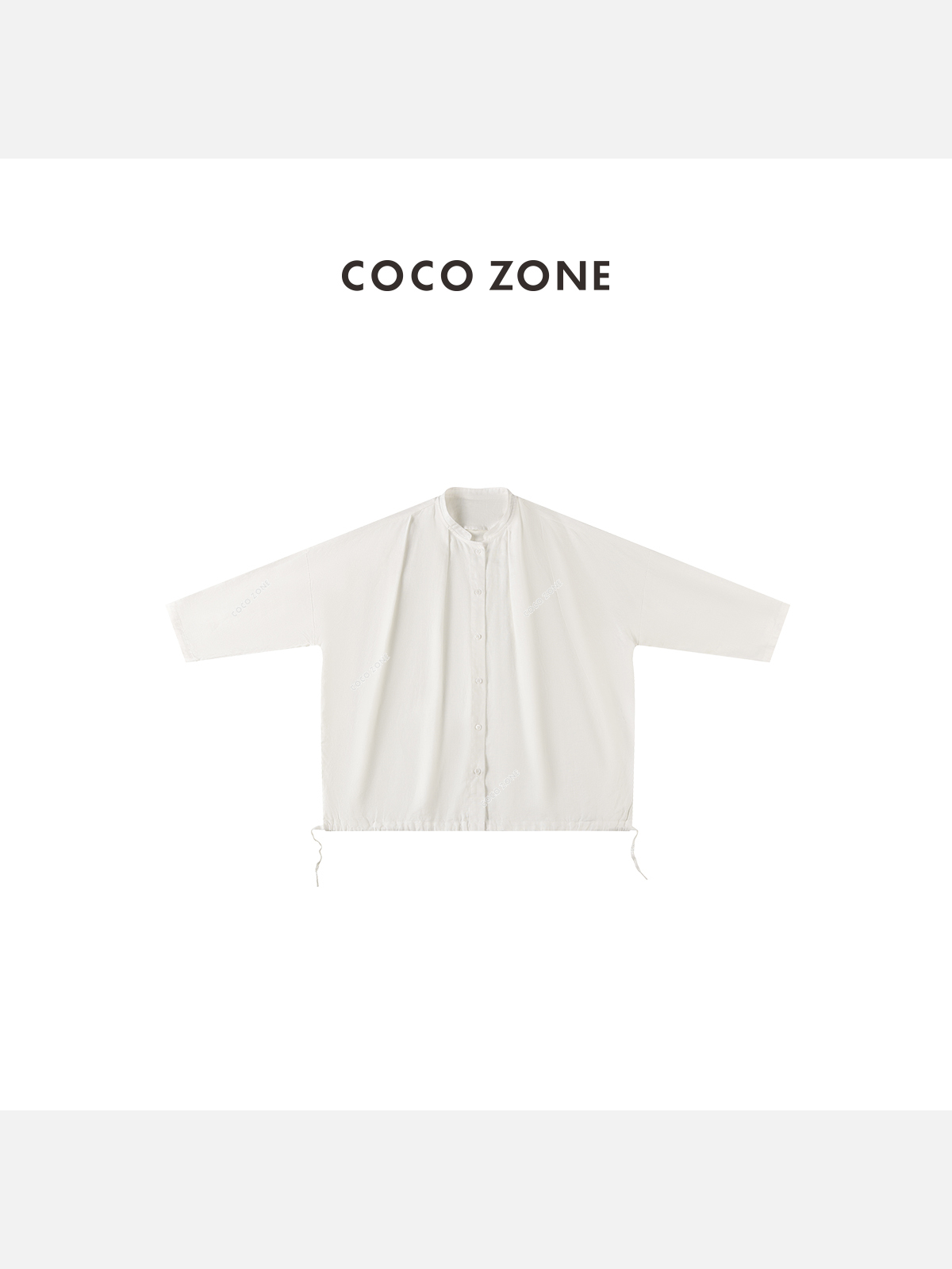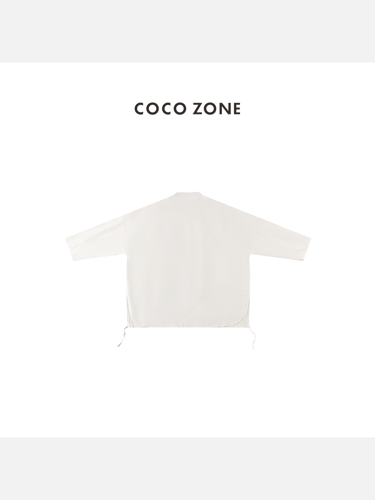 COCO ZONE 夏季立领麻料长袖抽绳衬衫上衣 23C18709