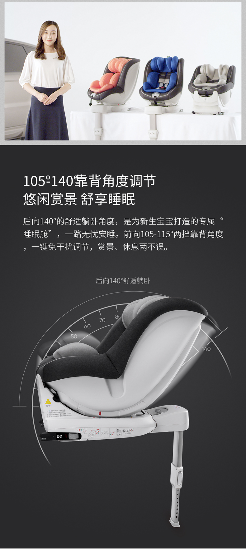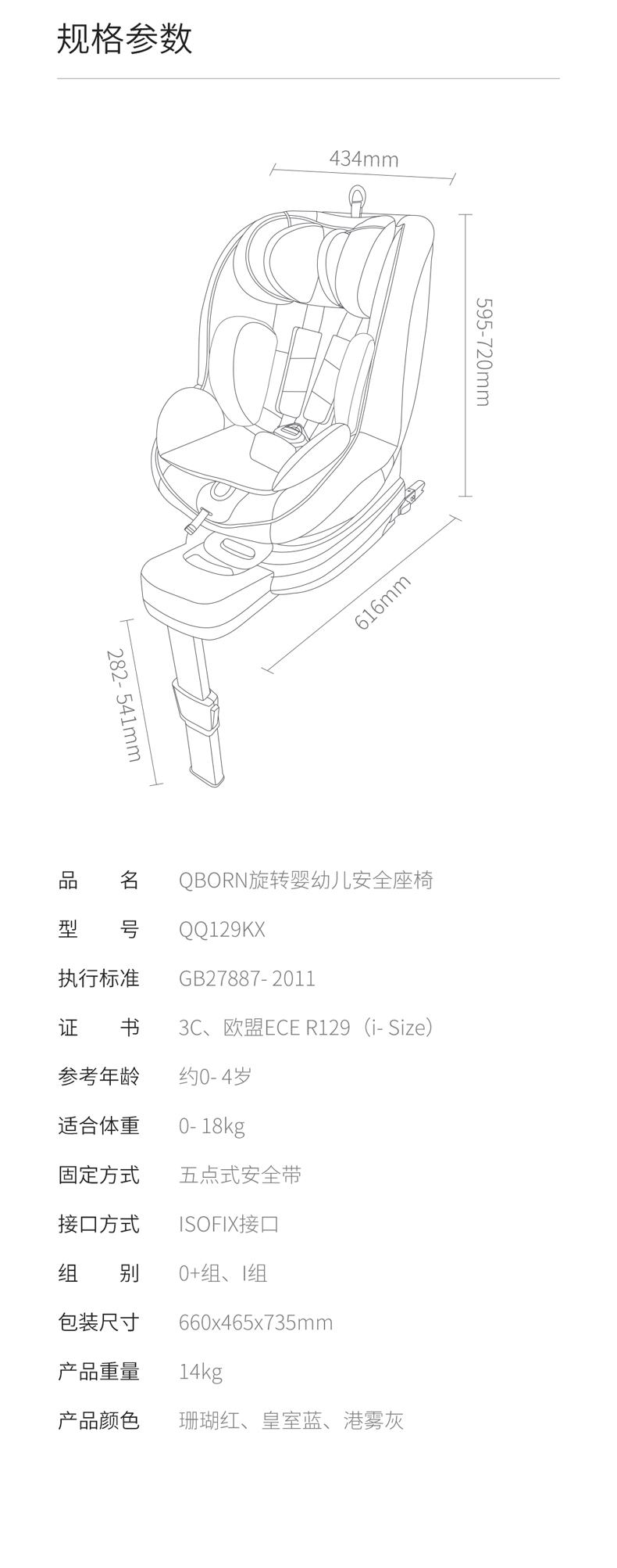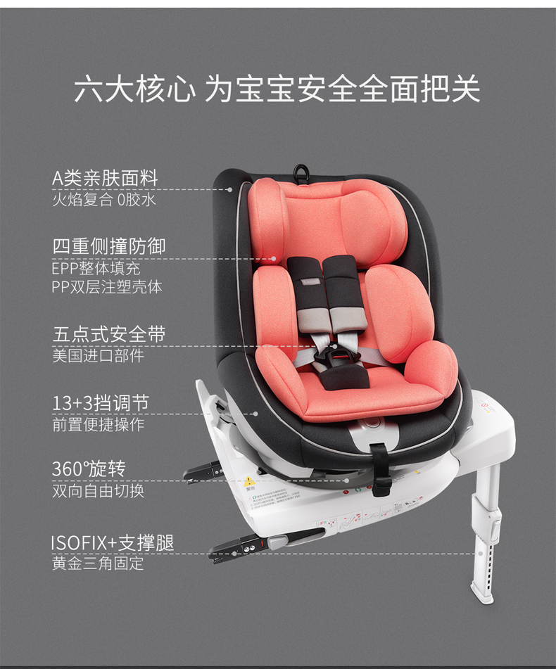 qborn儿童安全座椅0-4岁婴儿宝宝汽车用车载可坐躺360度旋转isize