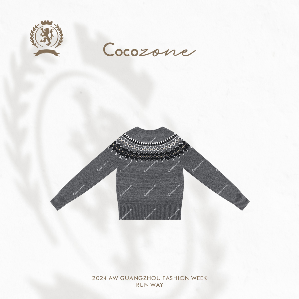 COCO ZONE 法式复古套头针织衫撞色圆领休闲上衣CC2C2280