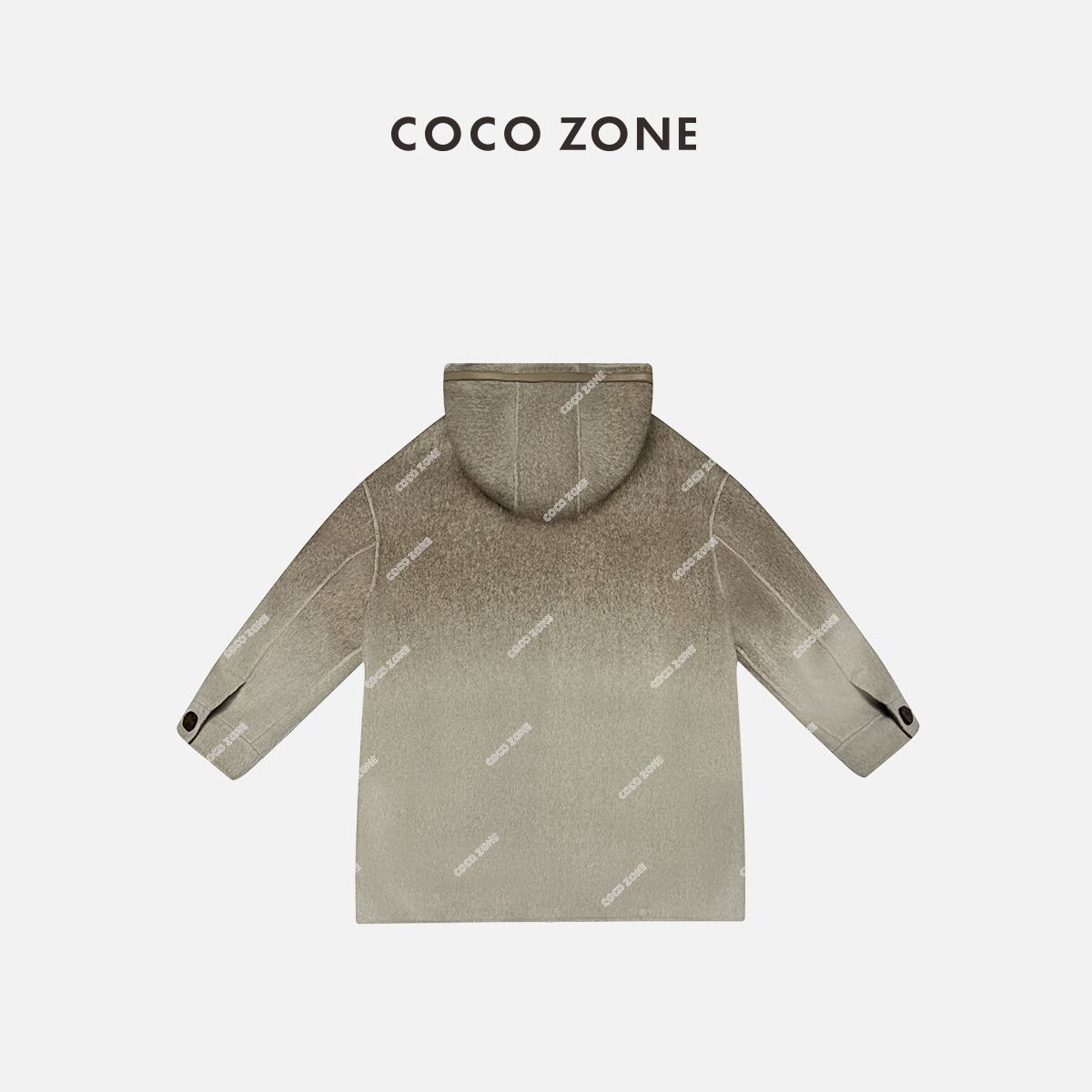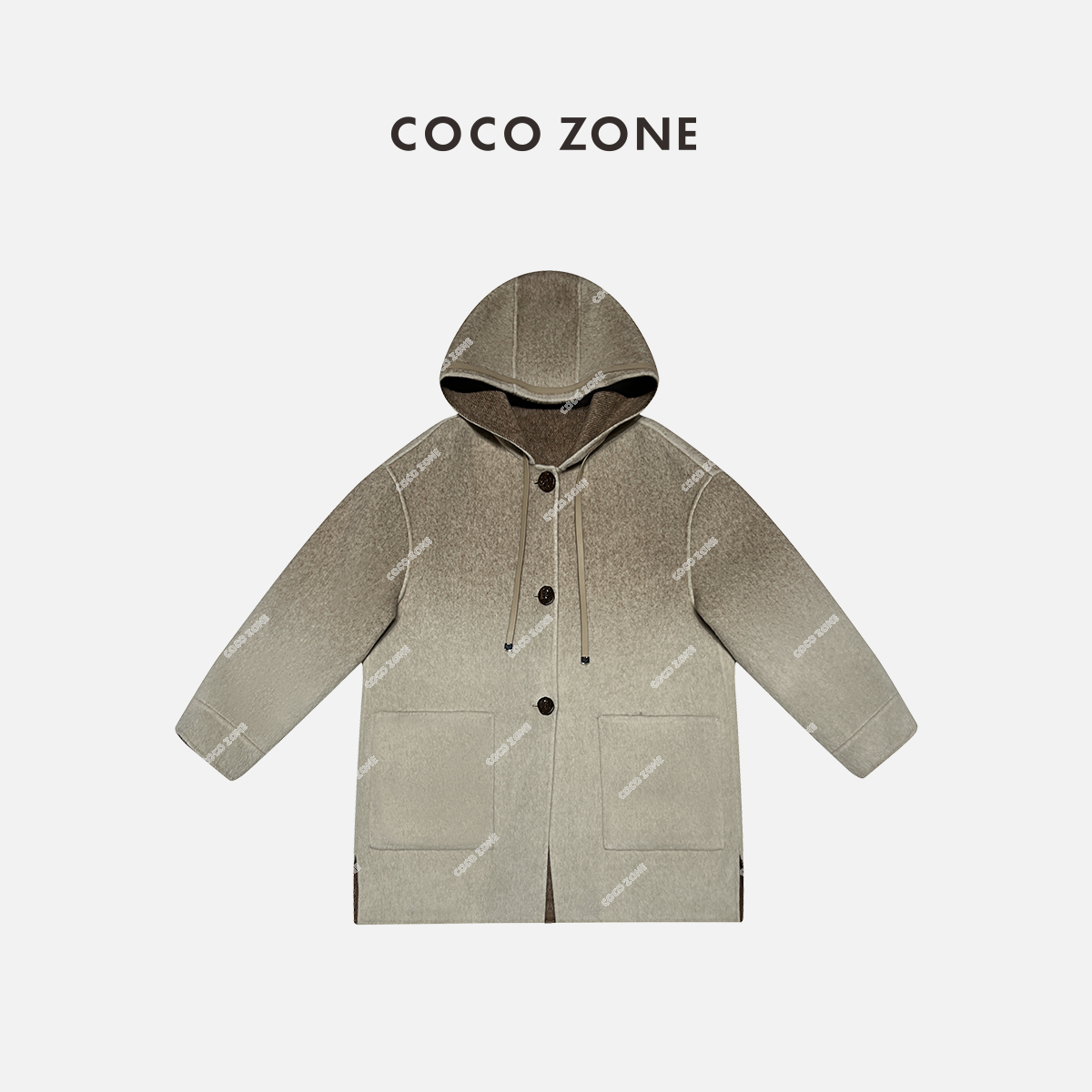 刘一一&COCO ZONE美拉德渐变色呢子大衣连帽扣毛呢外套 23C30151