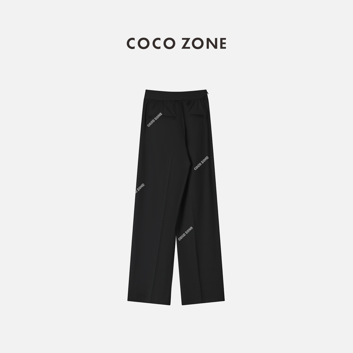 COCO ZONE褶皱感长裤百搭松紧腰通勤风纯色直筒裤23C19299