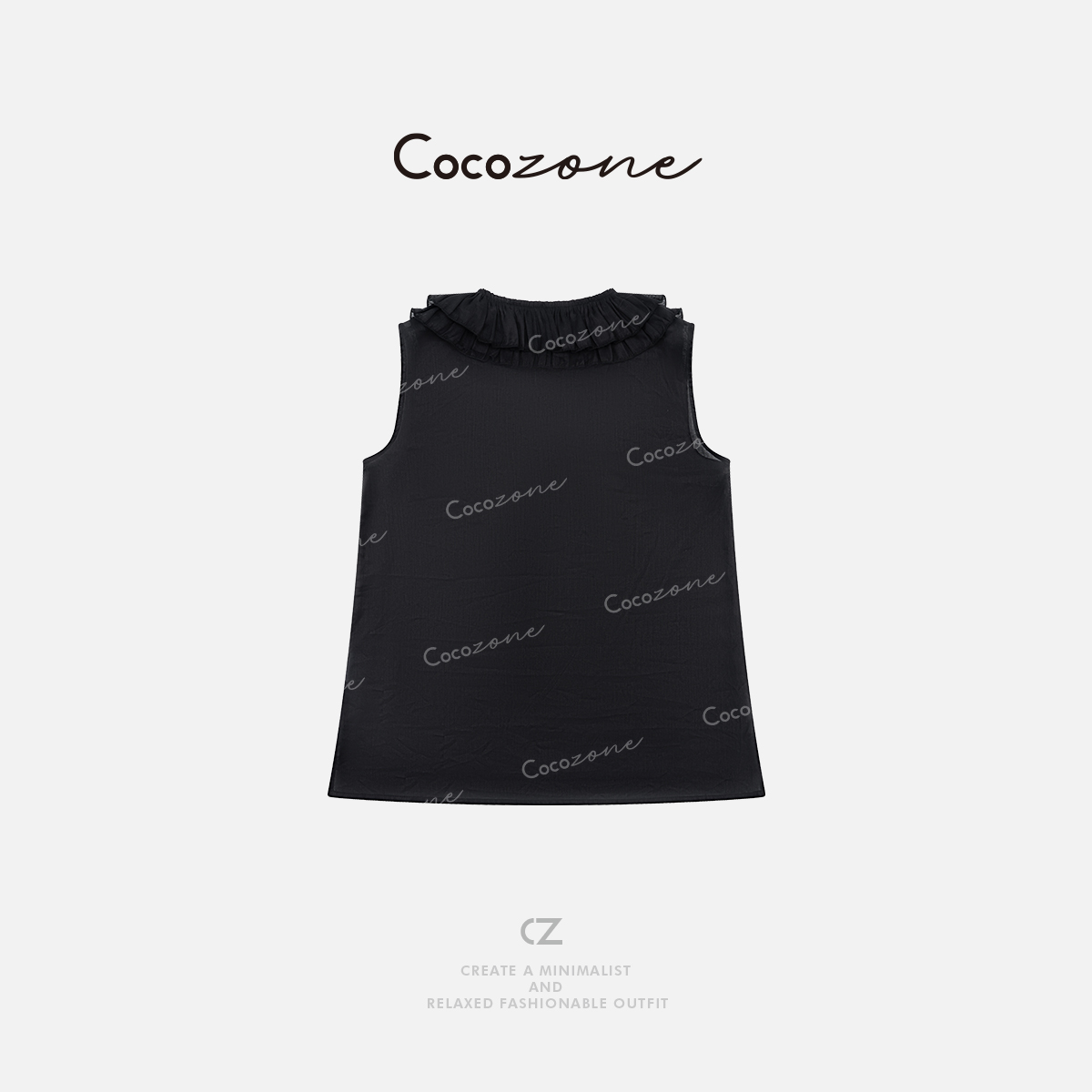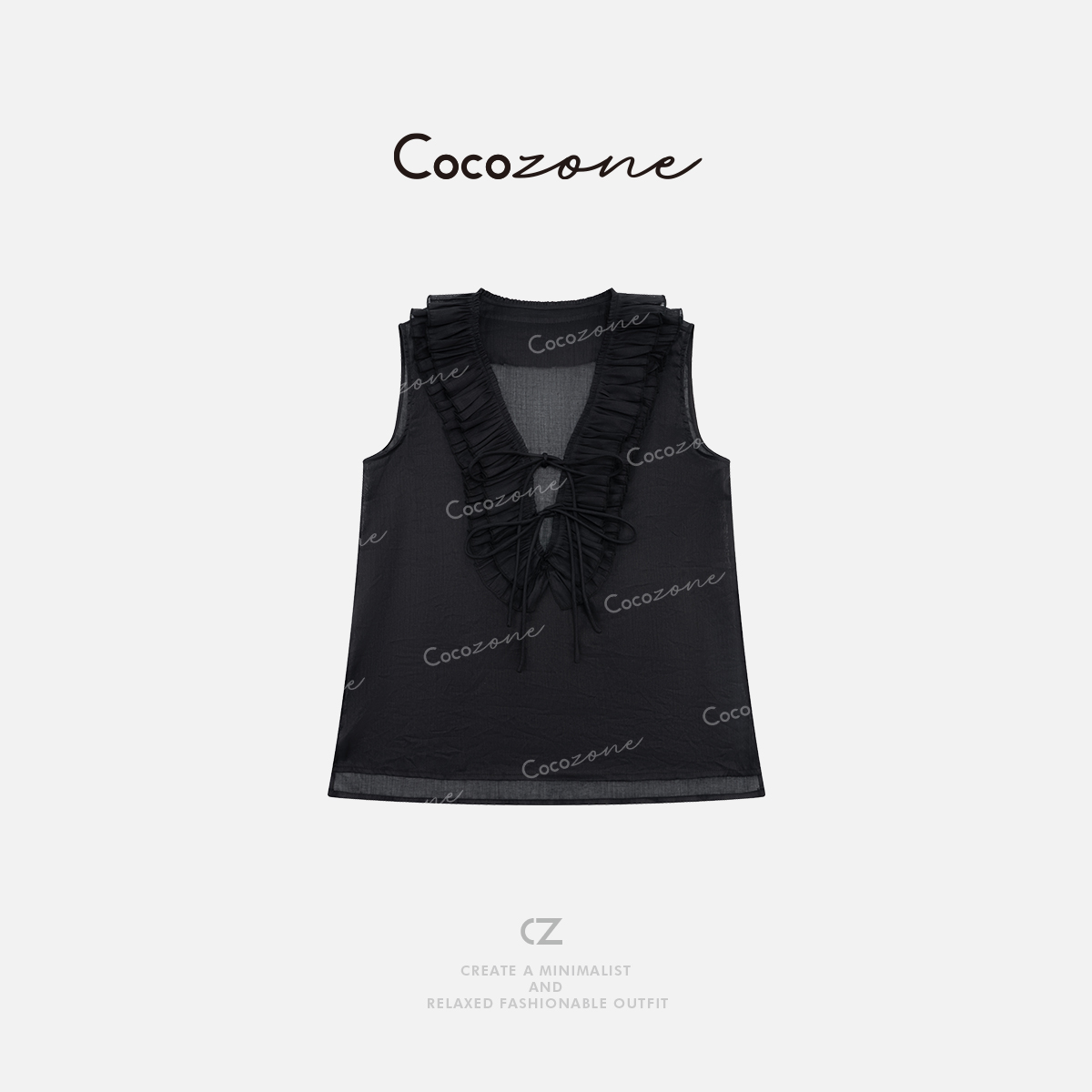 COCO ZONE 刘一一 【100亚麻】透气木耳边绑带无袖背心CD2A0979