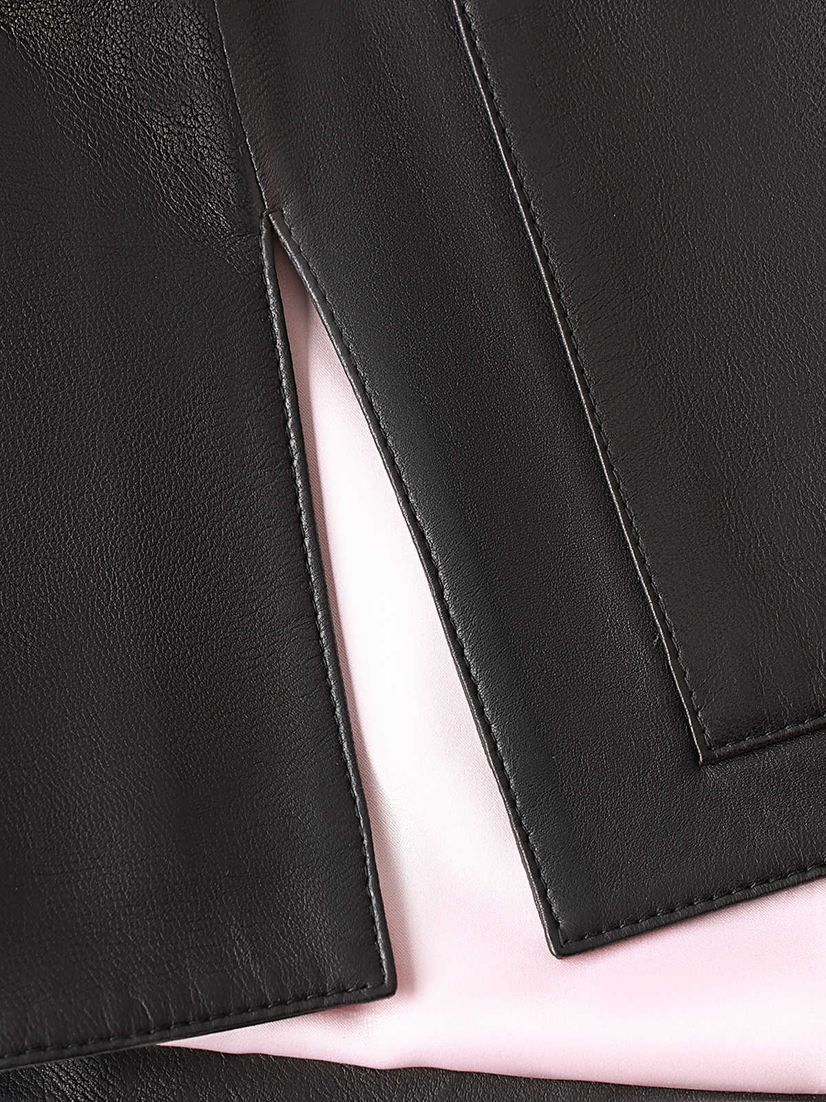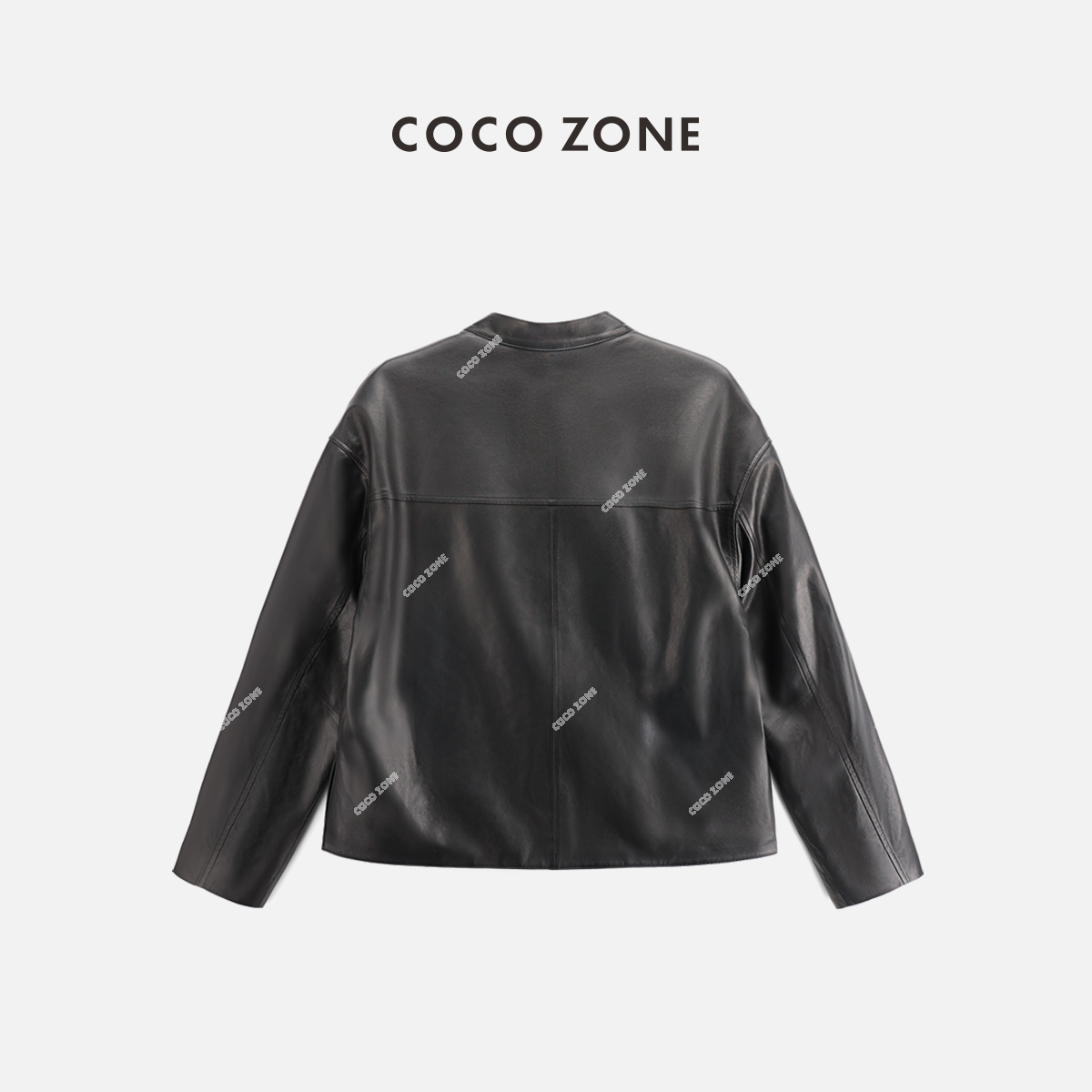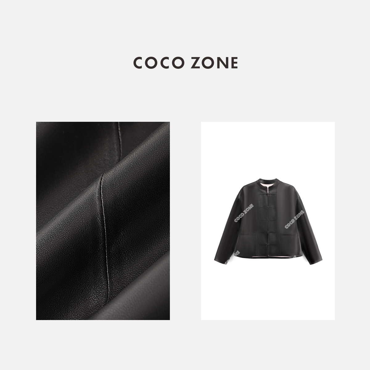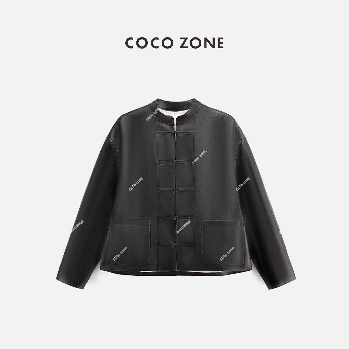 COCO ZONE 立领新中式国风盘扣气质皮衣外套 CC2A0173
