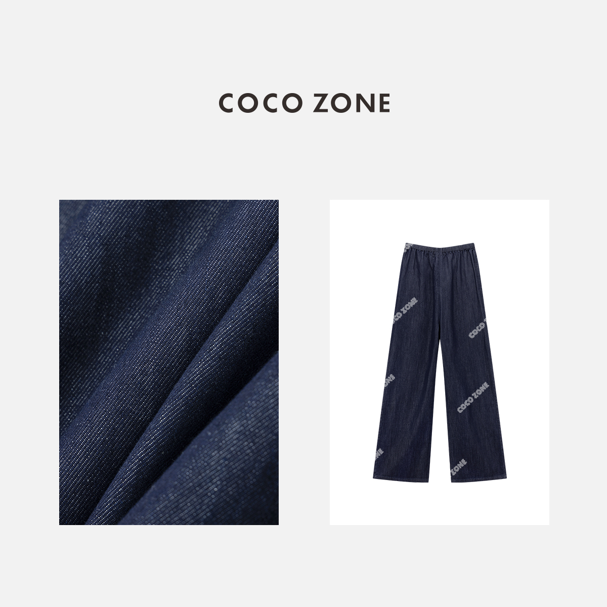 COCO ZONE“原色牛”夏季显瘦垂感牛仔裤百搭松紧腰直筒裤CC1B0816