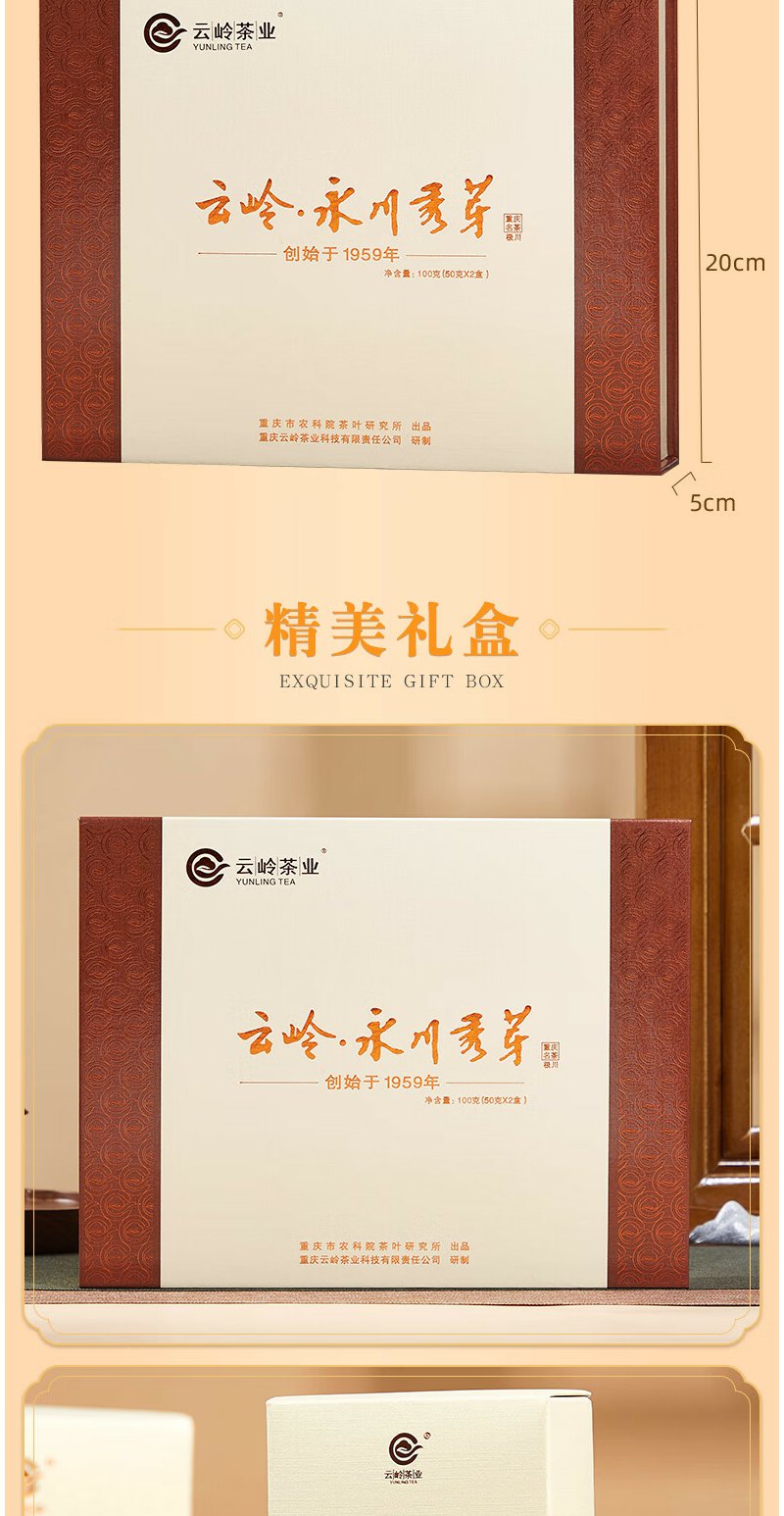 云岭茶业永川秀芽2024新茶极川明前绿茶高档茶叶礼盒装重庆特产送礼客户 极川茶礼100g