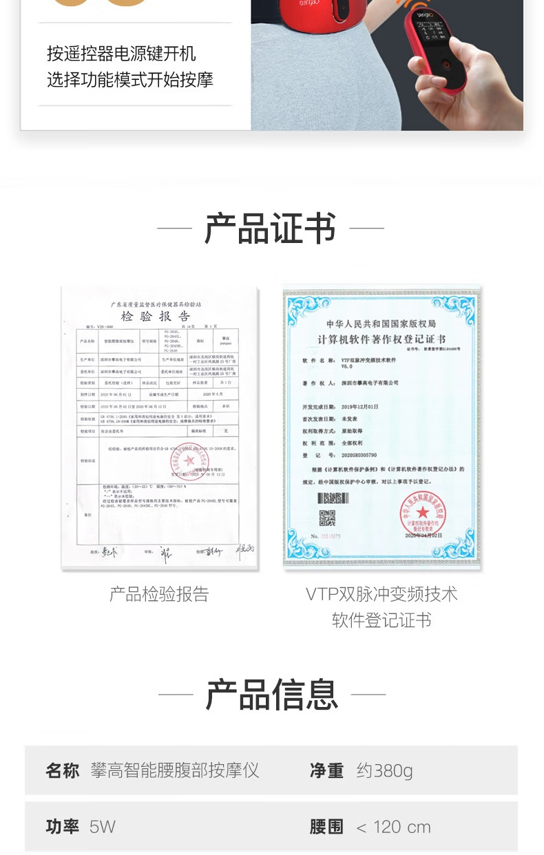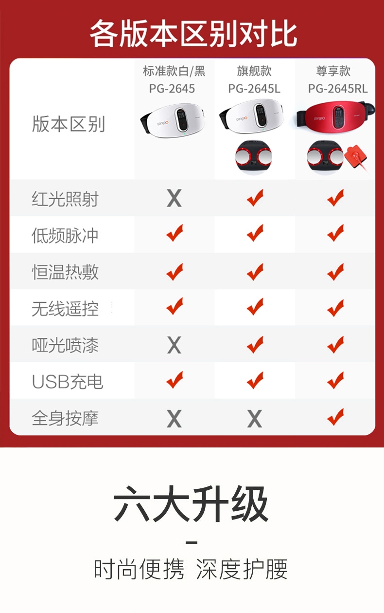 攀高智能腰腹部按摩仪尊贵款PG-2645RL 中国红