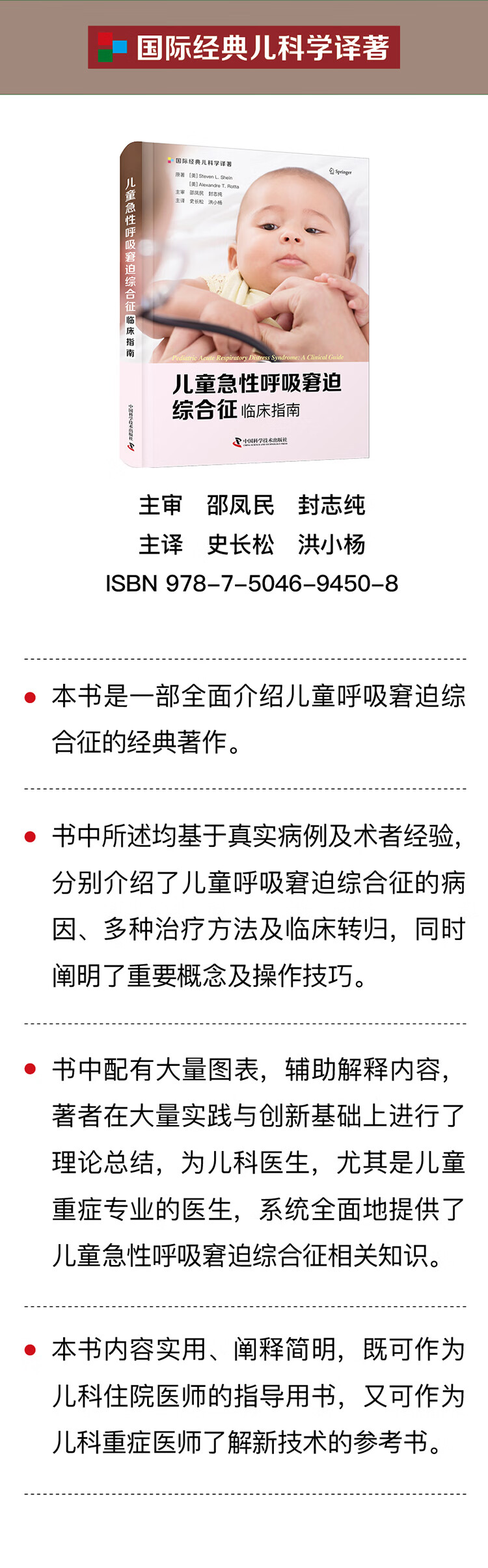 本书引进自Springer出版社,是一部全面介绍儿童呼吸窘迫综合征的经典著作。书中所述均基于真实病例及术者经验,分别介绍了儿童呼吸窘迫综合征的病因、多种治疗方法及临床转归,同时阐明了重要概念及操作技巧。书中配有大量图表,辅助解释内容,著者在大量实践与创新基础上进行了理论总结,为儿科医生,尤其是儿童重症专业的医生,系统全面地提供了儿童急性呼吸窘迫综合征相关知识。本书内容实用、阐释简明,既可作为儿科住院医师的指导用书,又可作为儿科重症医师了解新技术的参考书。