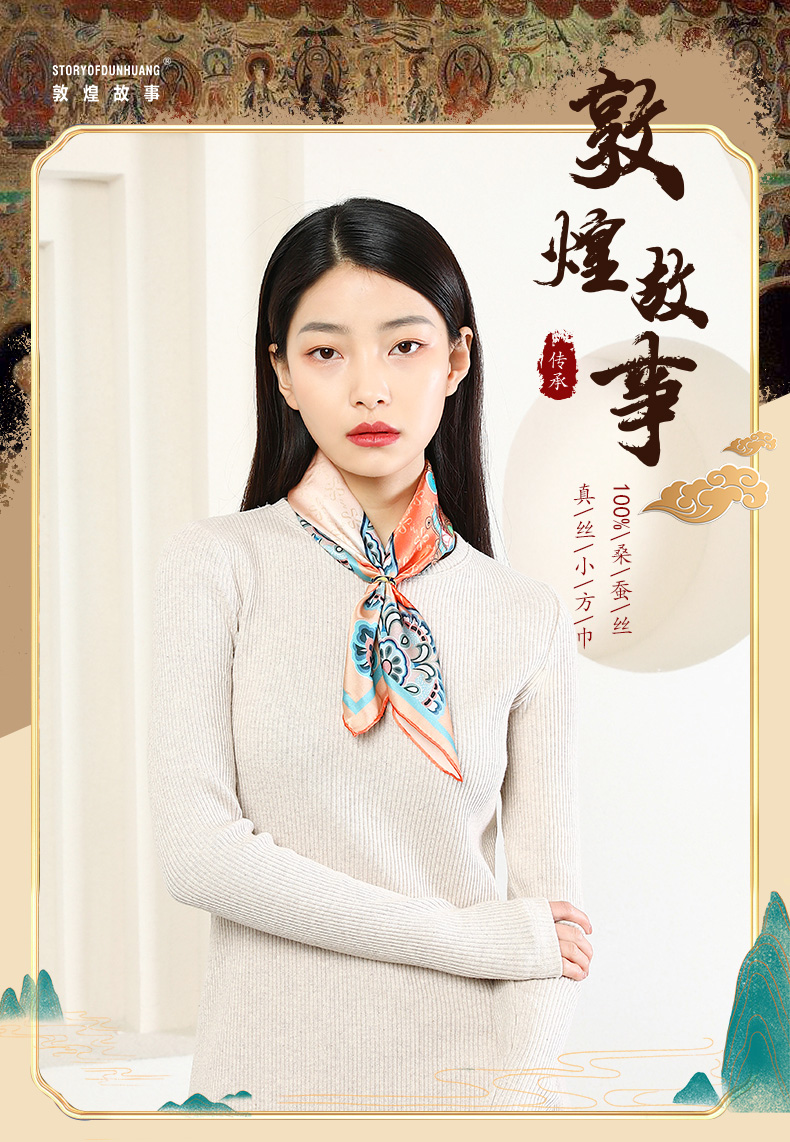 敦煌故事桑蚕丝春秋印花送礼中国风女丝巾