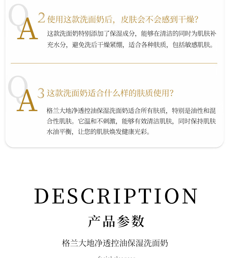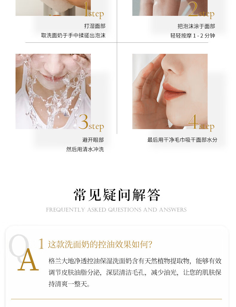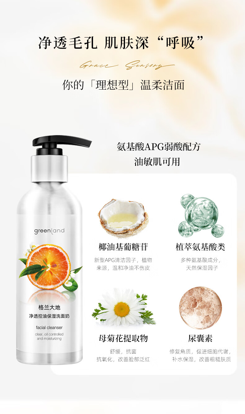 格兰大地氨基酸洗面奶控油洁面膏200ml