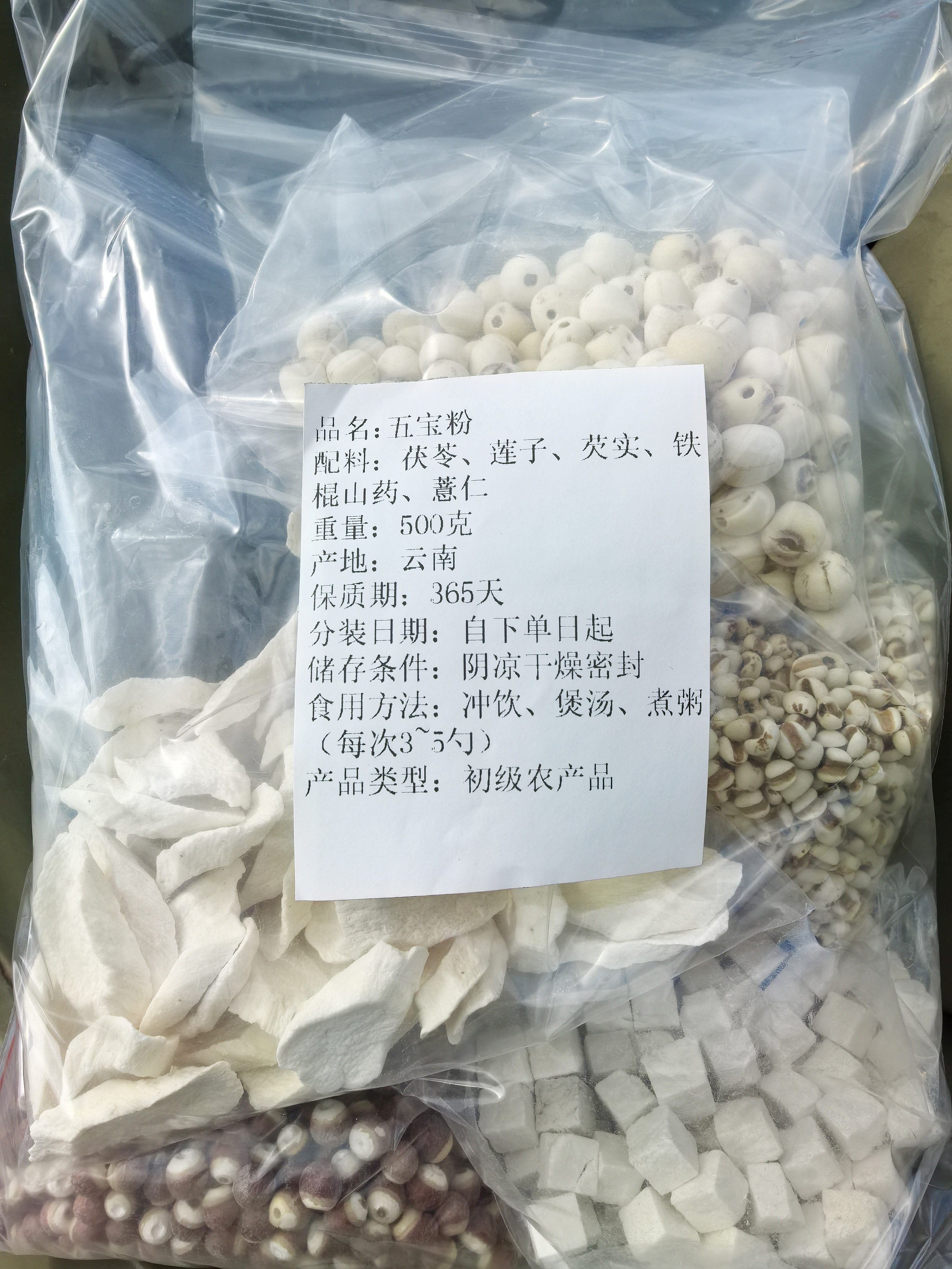 云南山货五宝:芡实、山药片、薏仁、茯苓、莲子