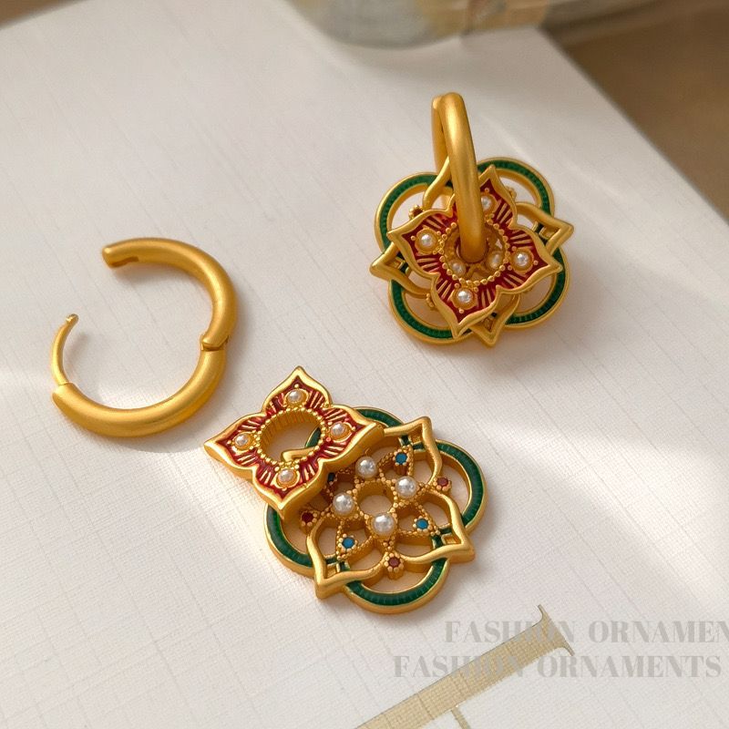 「小众设计!国潮复古」原创宫廷风耳环个性镂空彩绘耳扣一款多戴耳时尚饰品