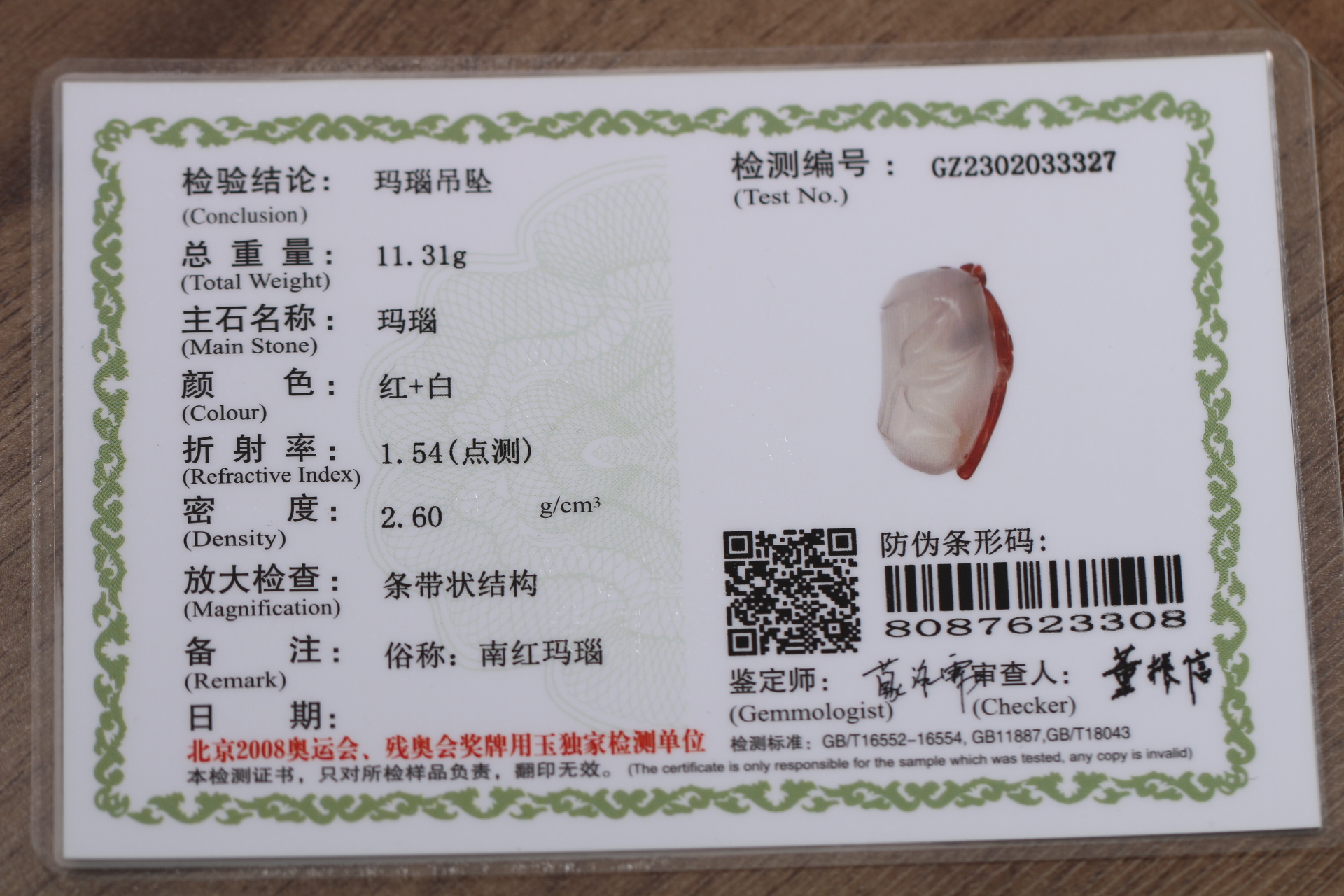 南红冰飘【竹报平安】吊坠 配精美挂绳
