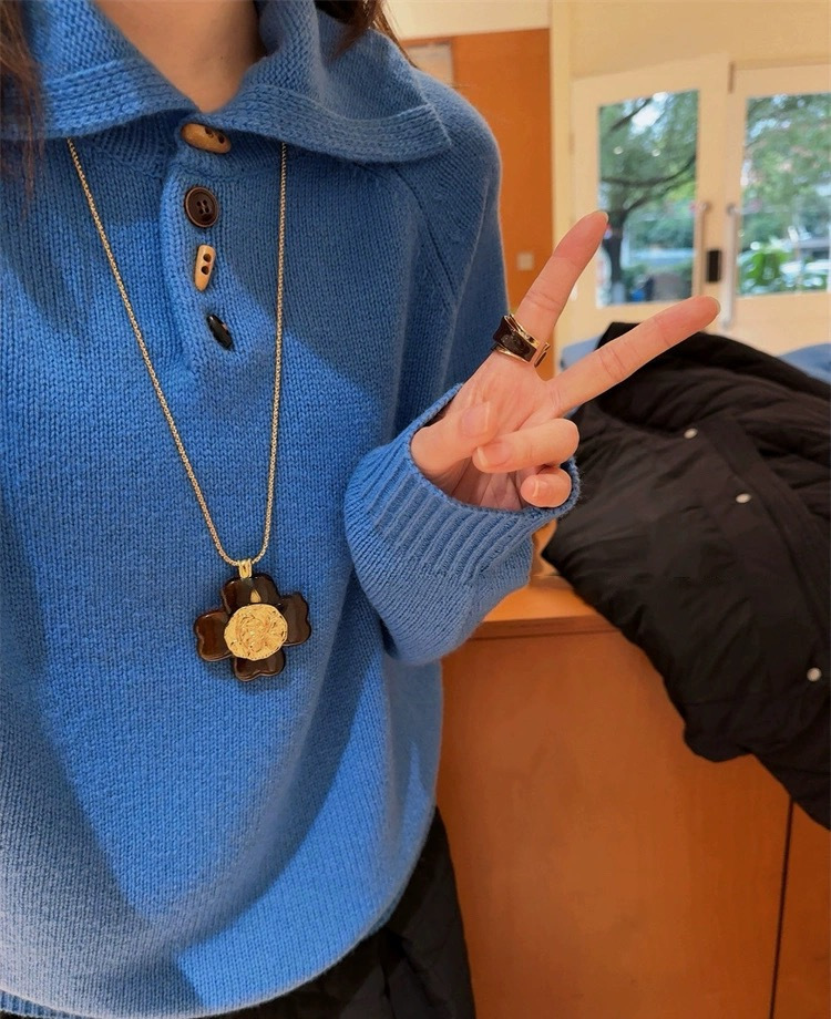 插肩袖设计,视觉显瘦,斜向缝线模糊肩部轮廓,使上半身线条更柔和流畅,有效缩短肩宽视觉比例,对梨形身材、苹果型身材都十分友好。