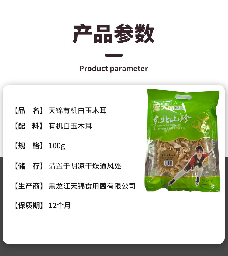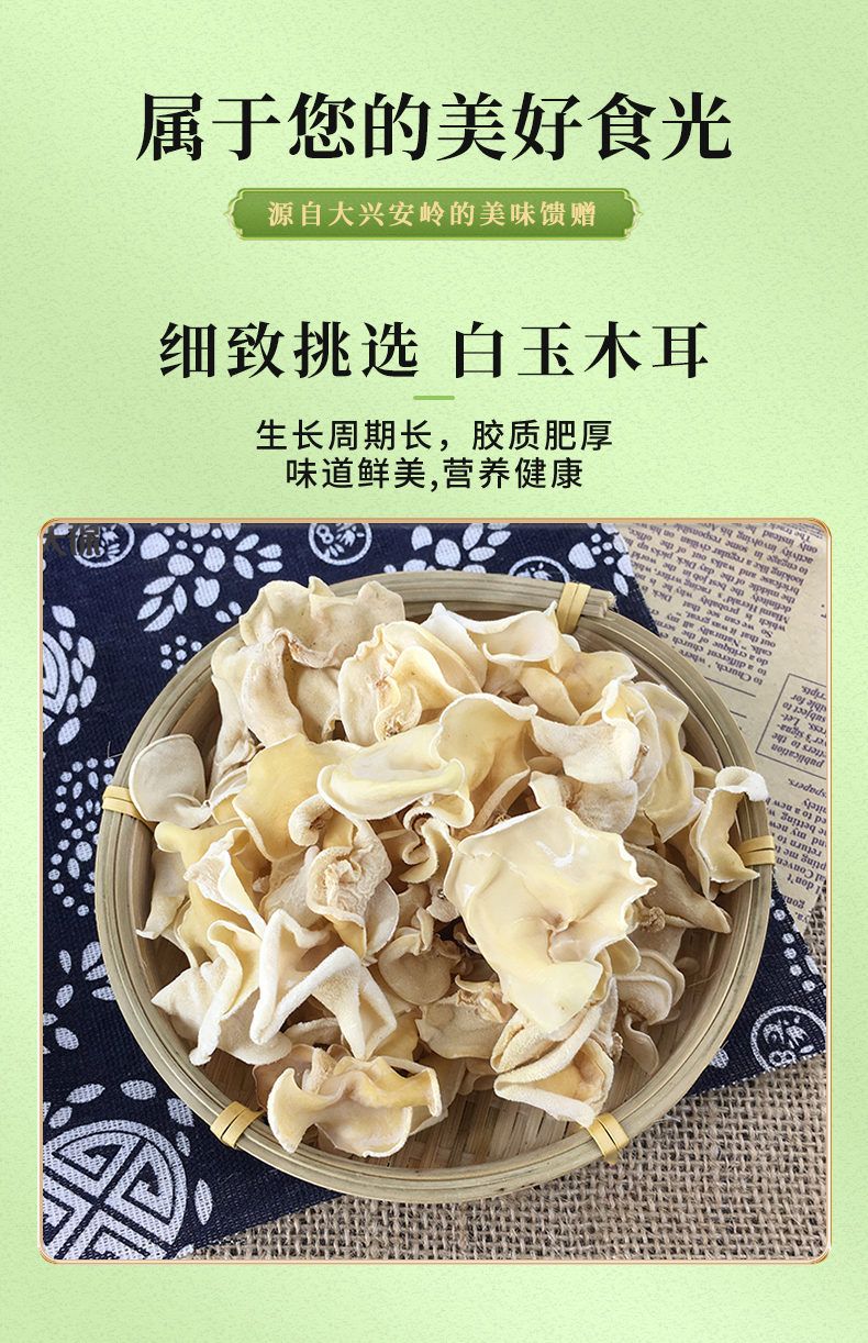 有机白玉木耳100g东北有机菌菇干货肉质醇香包邮