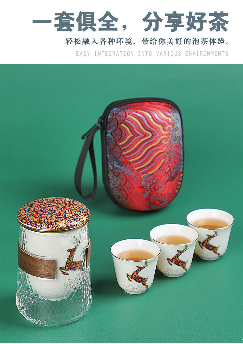 便携包旅行茶具套装一壶三杯防烫玻璃快客杯陶瓷功夫茶壶随身茶杯