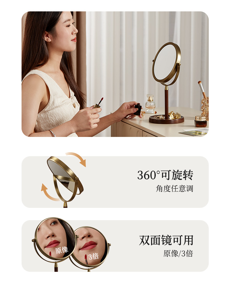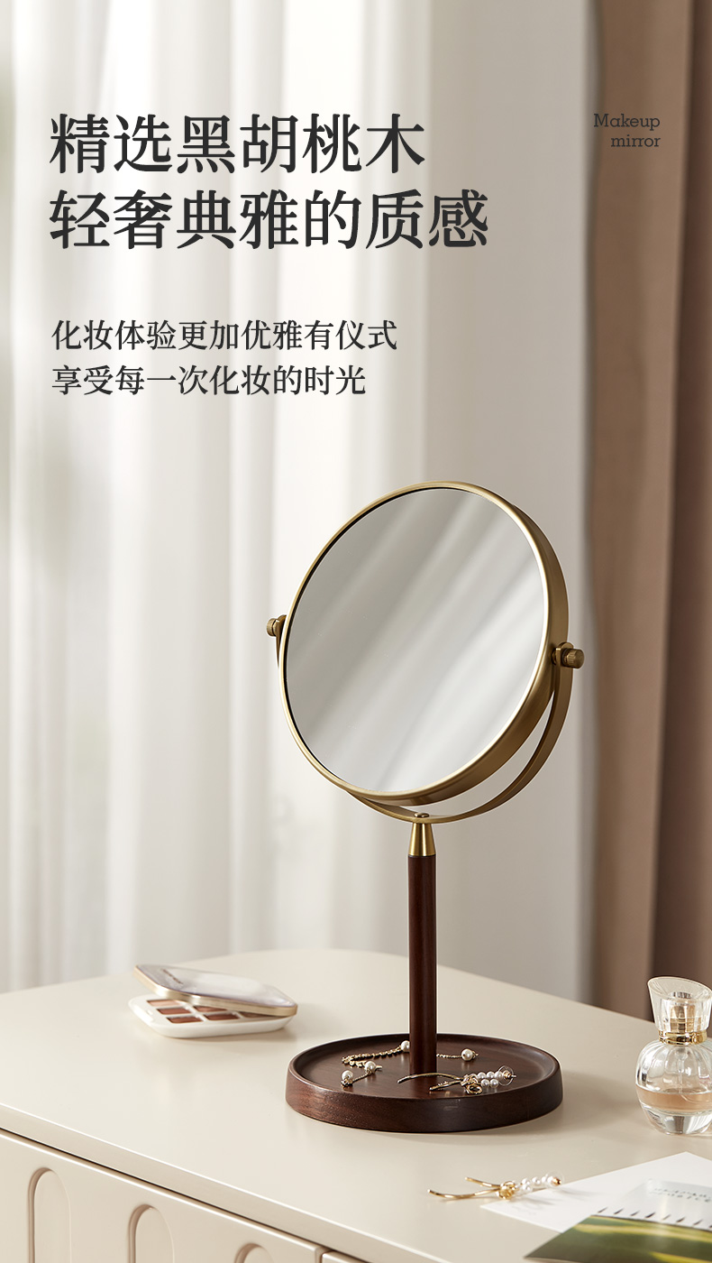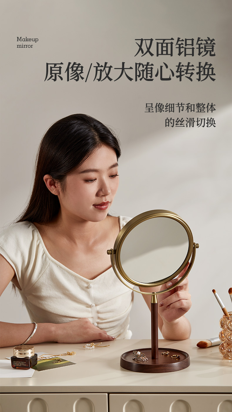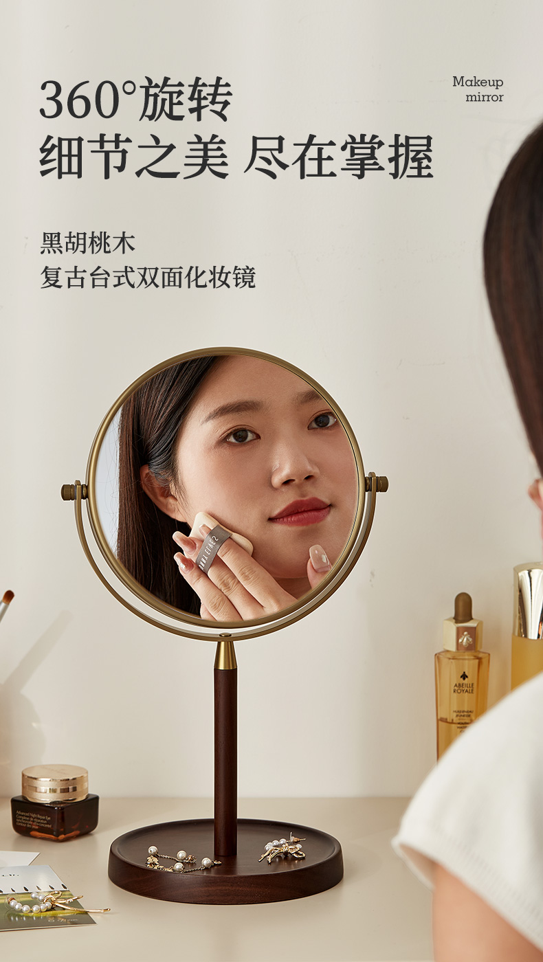 初心| 胡桃木复古化妆镜子可翻转3倍细节