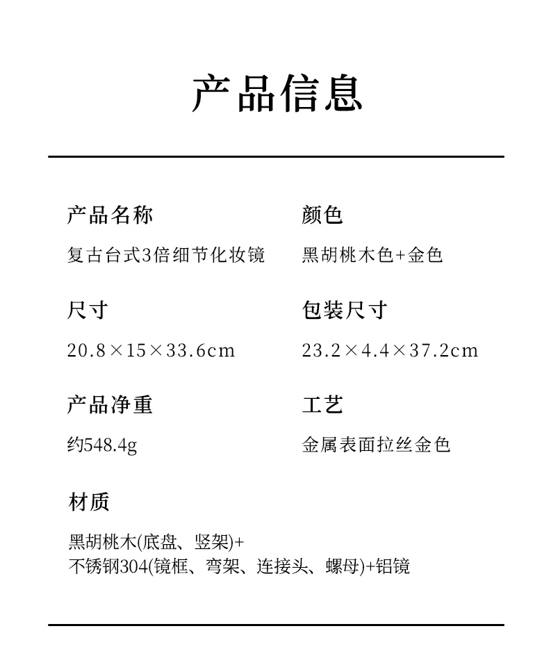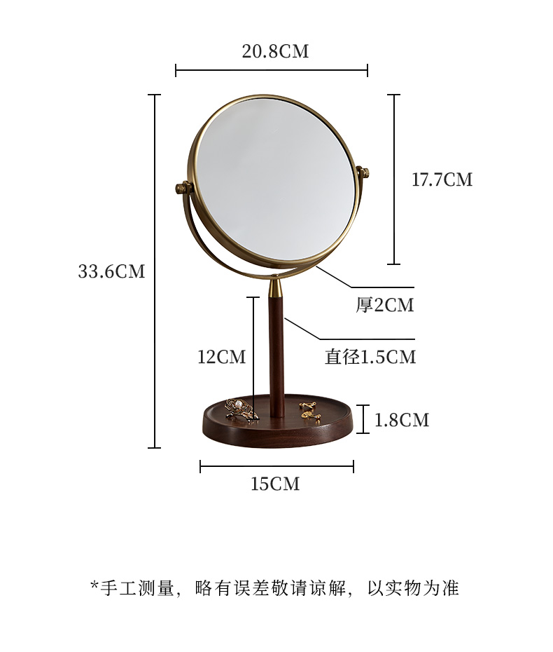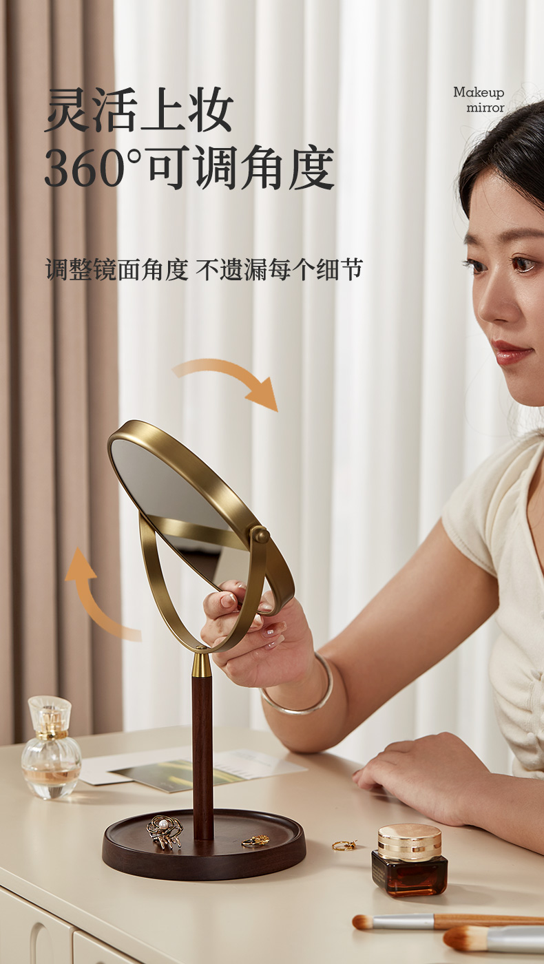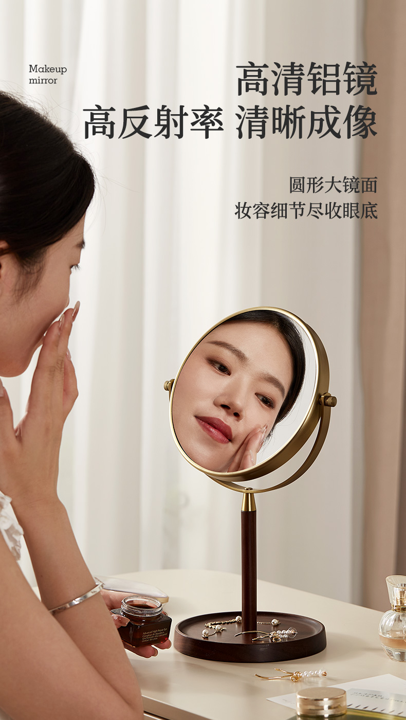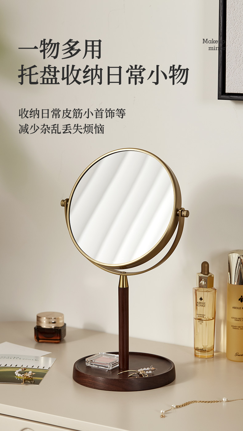 初心| 胡桃木复古化妆镜子可翻转3倍细节