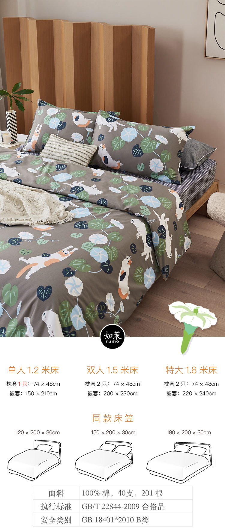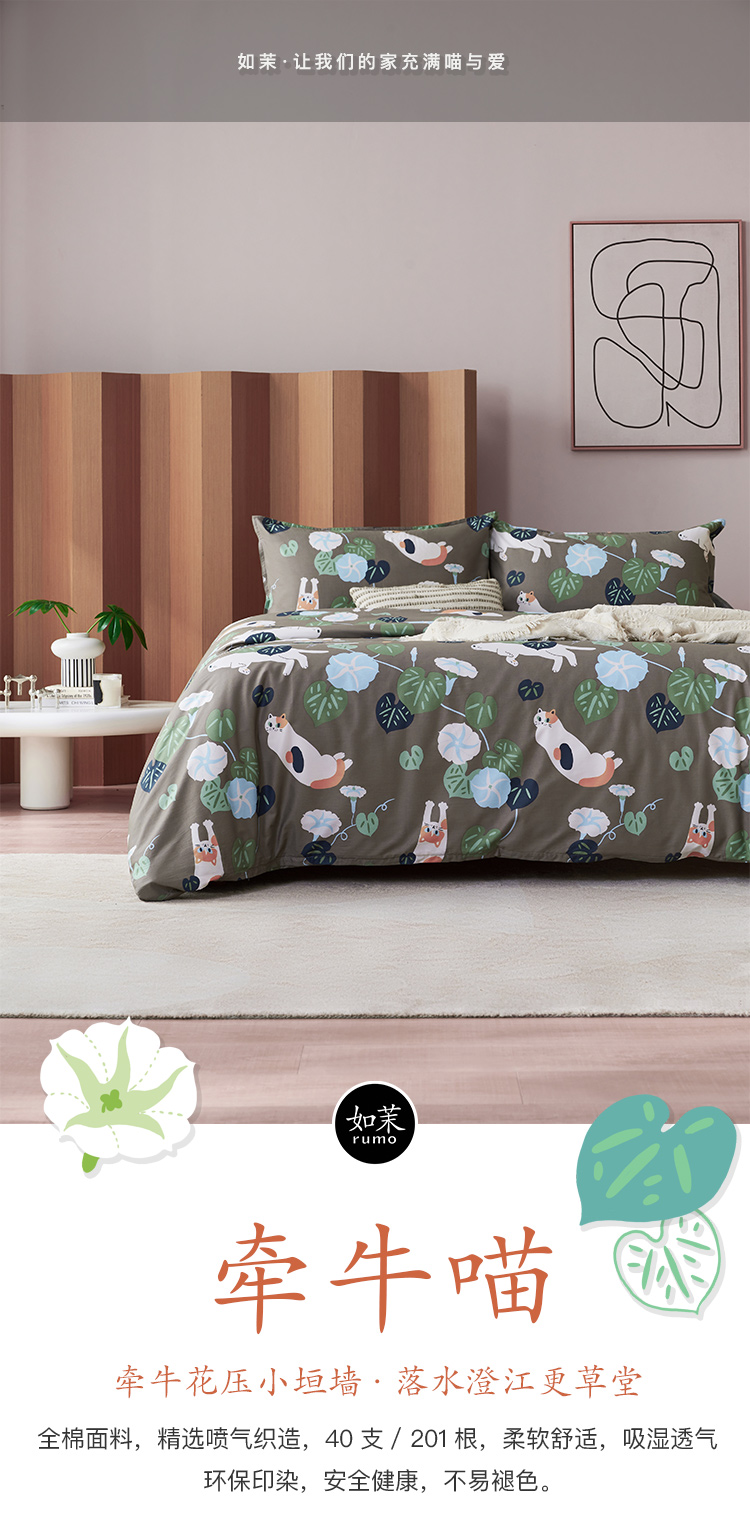 【幸运土猫】牵牛喵如茉全棉纯棉猫三四件套件柔软被套原创设计