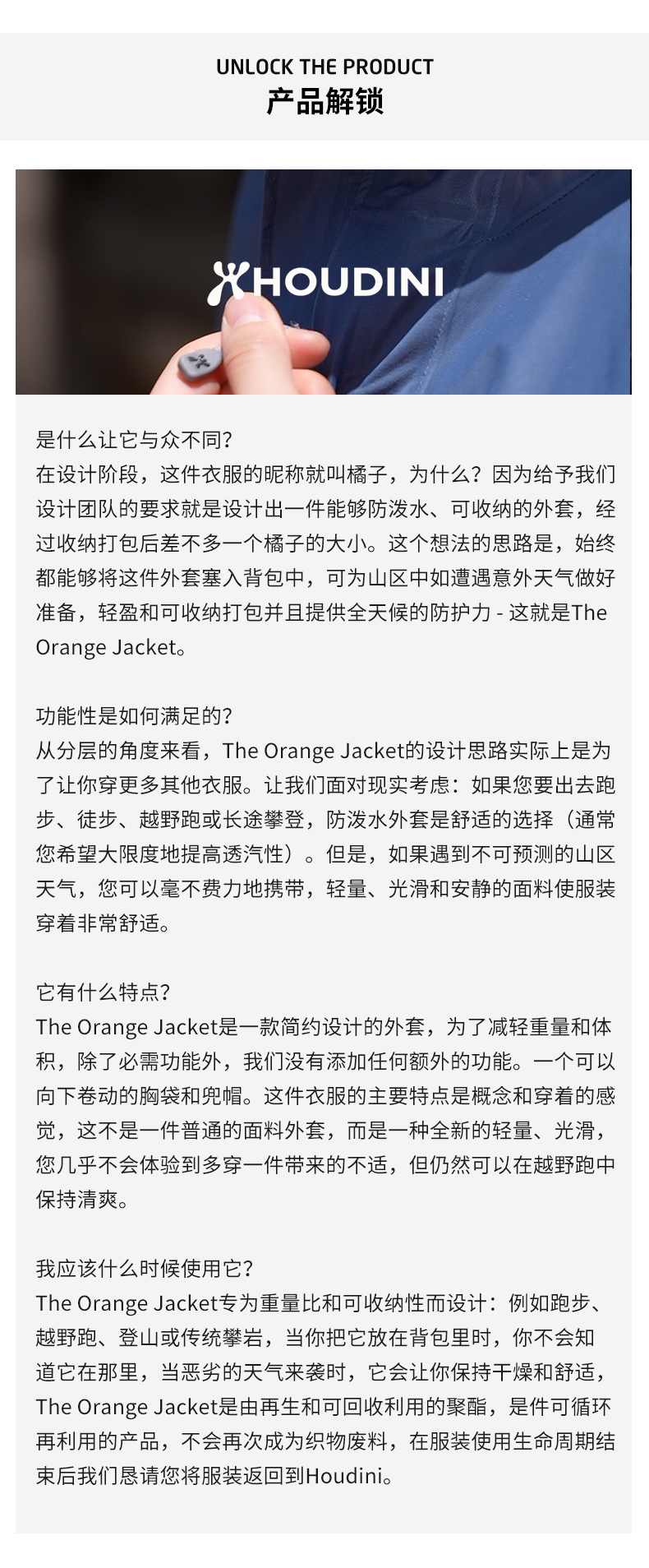 HOUDINI胡丁尼 Orange Jacket 橘子 男女轻薄遮阳防水连帽外套 840004