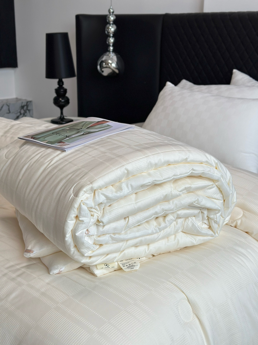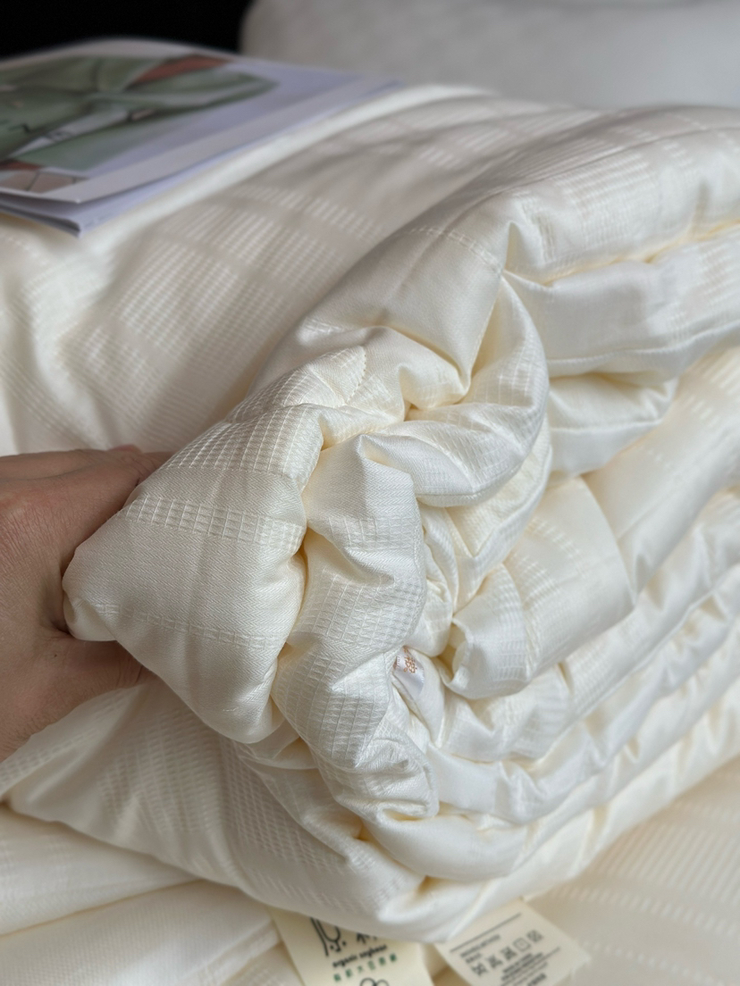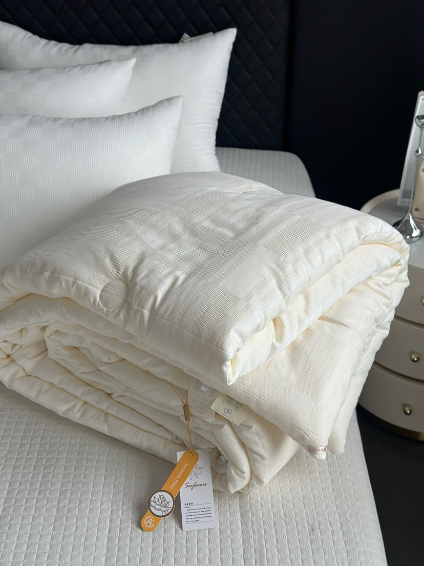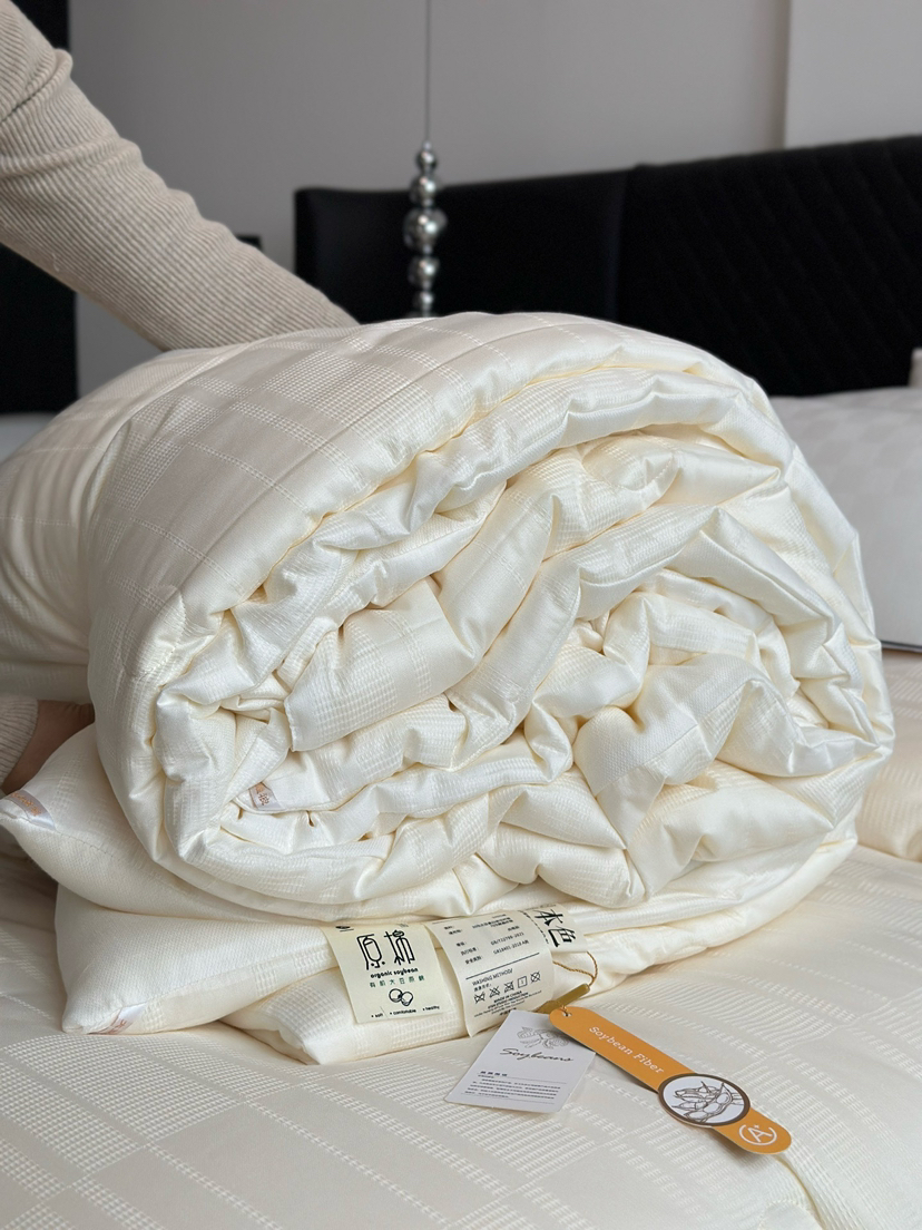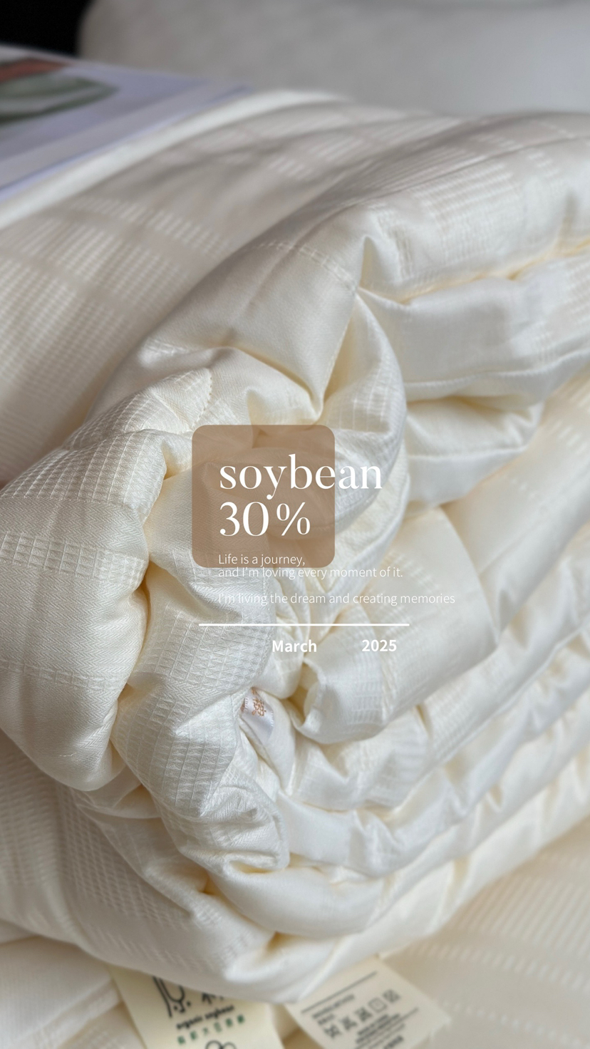 这款极奢大豆被手感媲美蚕丝被,大豆纤维富含多种胶原蛋白,对皮肤很好的哦!