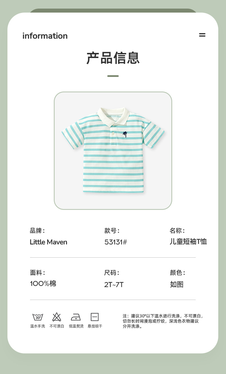 【简洁舒适 帅气有型】Little maven童T恤跨境童装夏季新款欧美中小童POLO衫短袖男童t恤