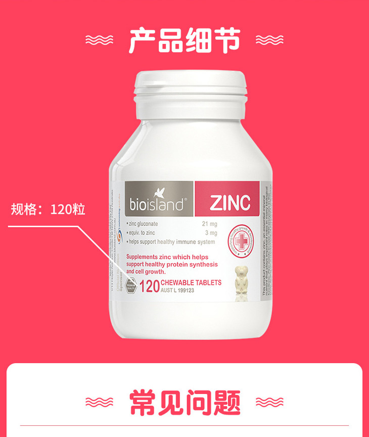 Bio island锌小熊儿童婴儿补锌婴幼儿宝宝咀嚼片120粒