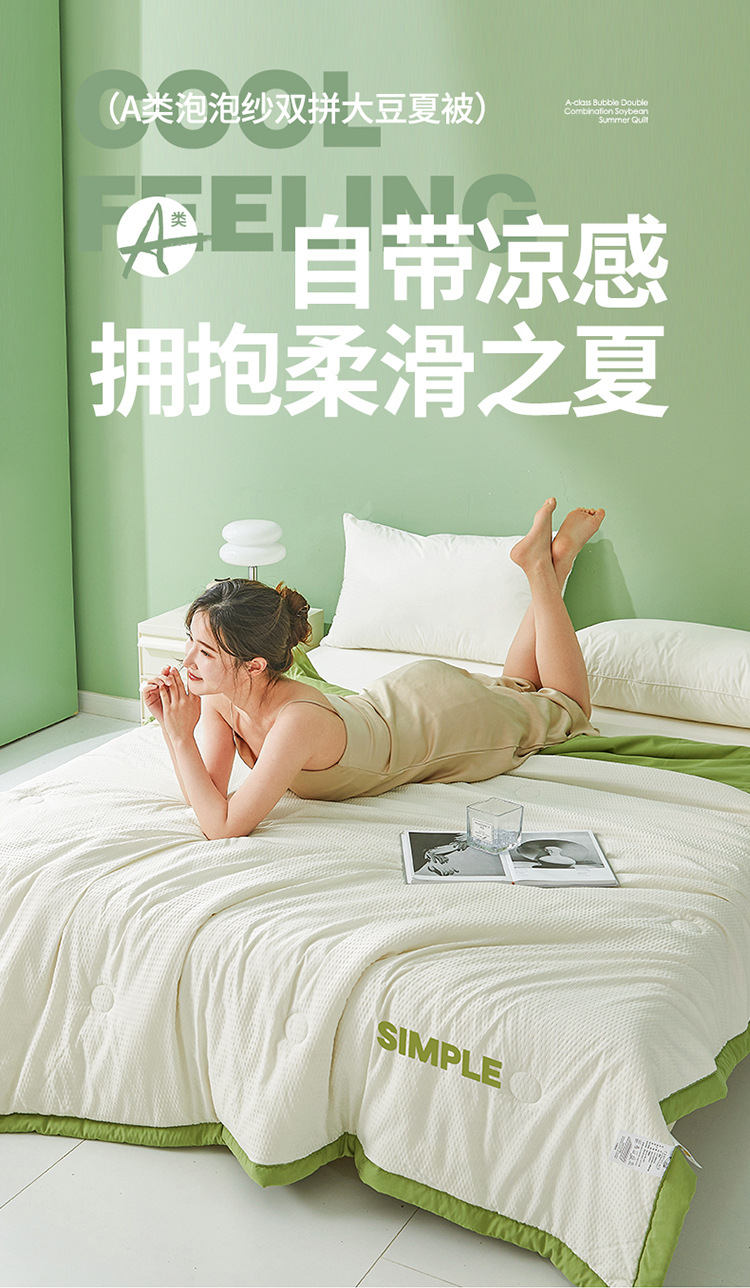 泡泡纱空调被大豆夏凉被a类可水洗儿童单双人薄被子