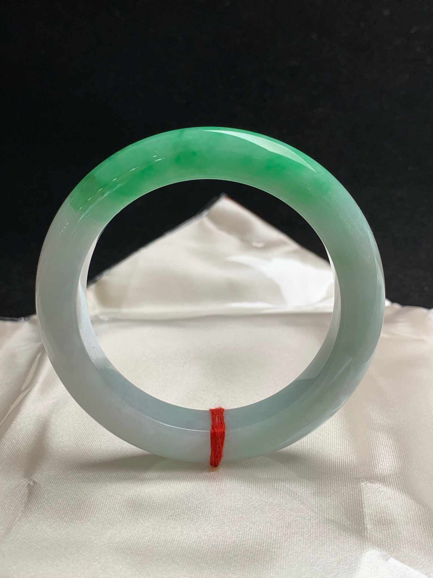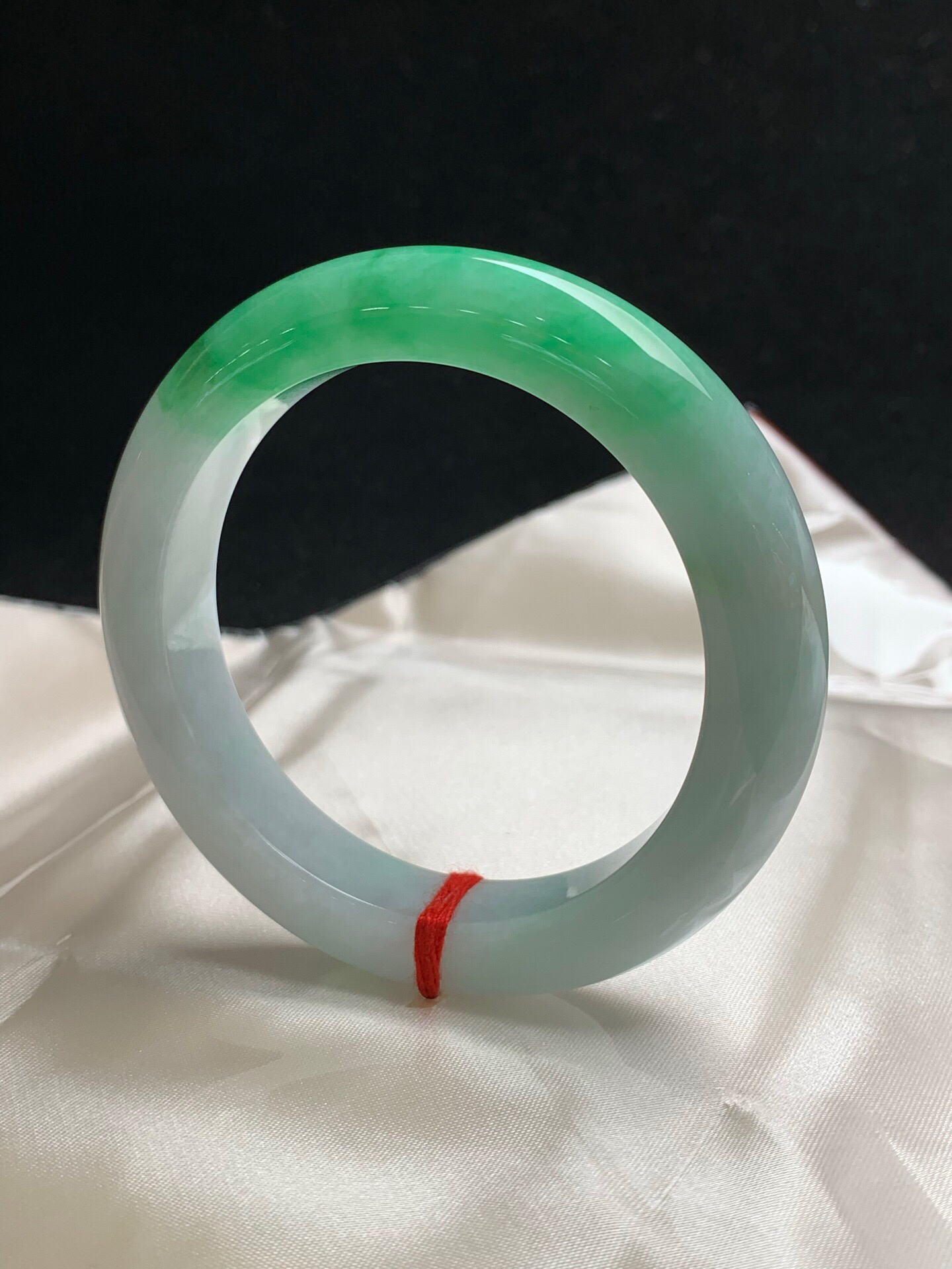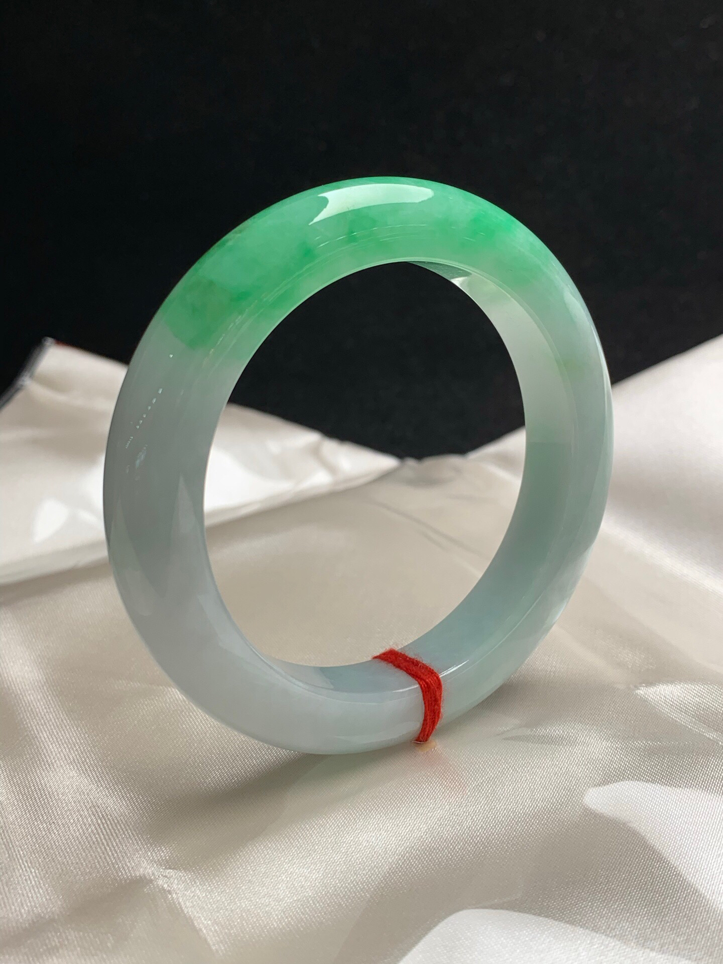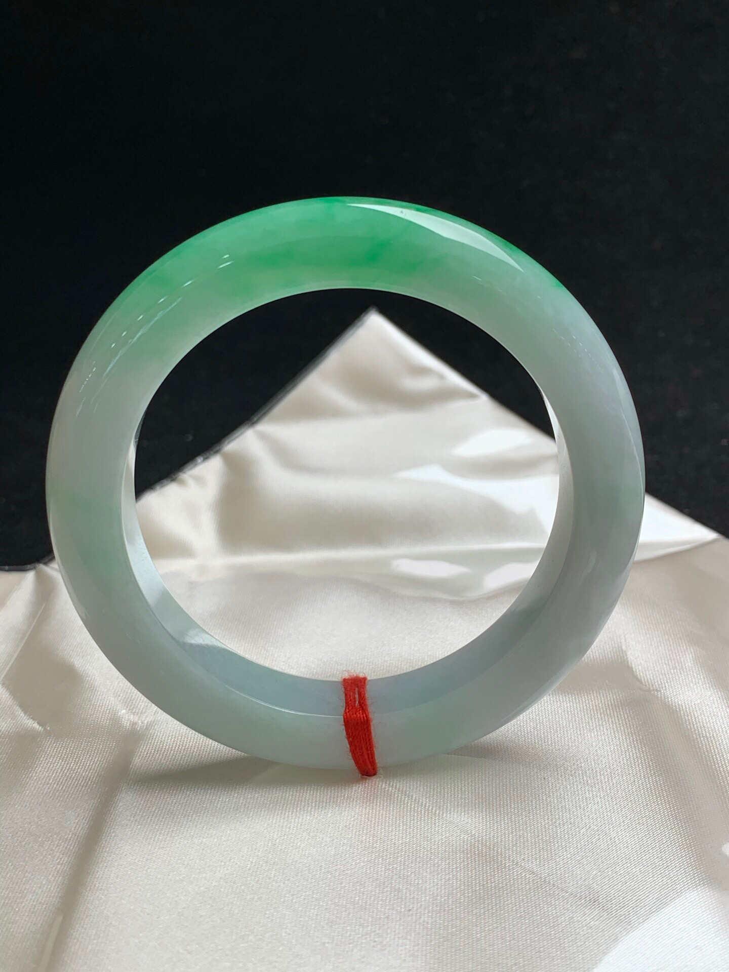 612980,55.2圈口,细糯飘绿正圈平安镯,白底飘绿,窄条秀气条形,飘色处有一条晶体色线纹,不抠,高性价比,尺寸:55.2-11.7-9.9,超值价💰35000 #优石客珠宝#香玉荟萃