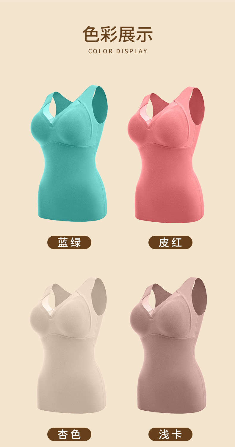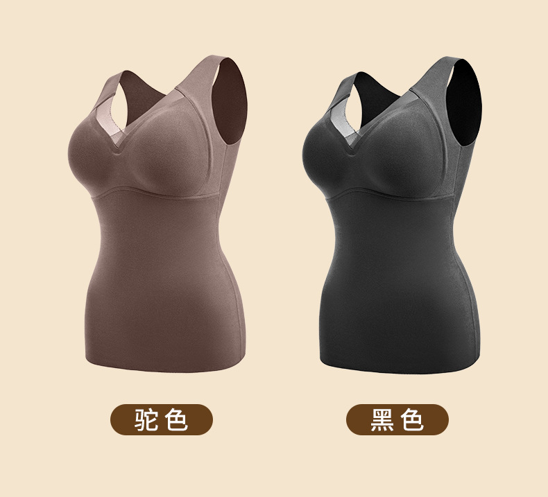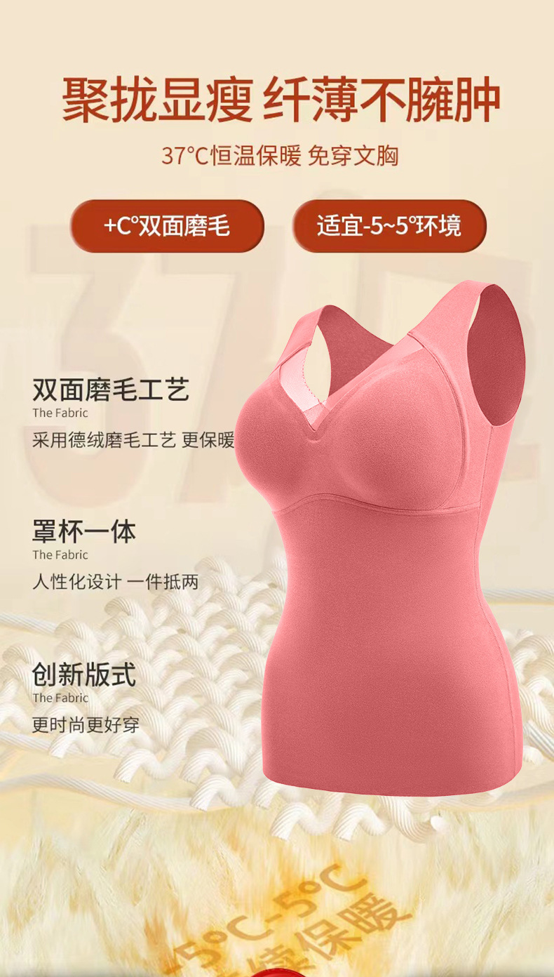 【聚拢显瘦!纤薄不臃肿】双面绒保暖背心,轻薄保暖发热德绒,保暖内衣女,纯色V领罩杯一体背心式女士收腹修身可外穿保暖上衣女
