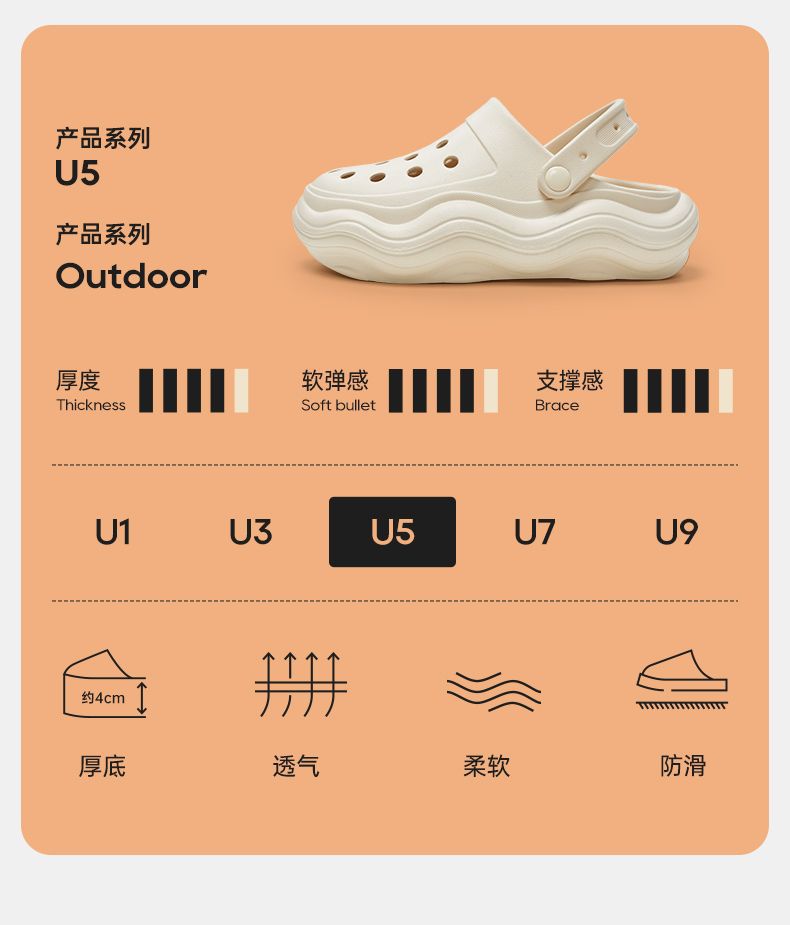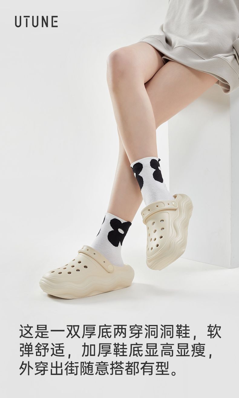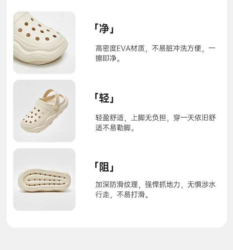 【随意搭都有型,厚底两穿洞洞鞋】优调新款包头洞洞鞋,变EVA材质轻盈舒适,不易脏冲洗方便,厚底增高情侣外穿防滑休闲沙滩鞋半拖鞋QQ