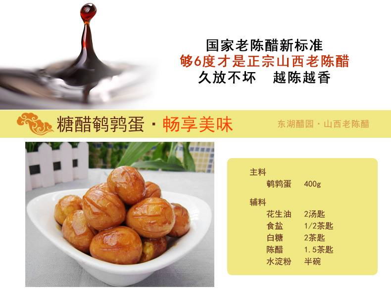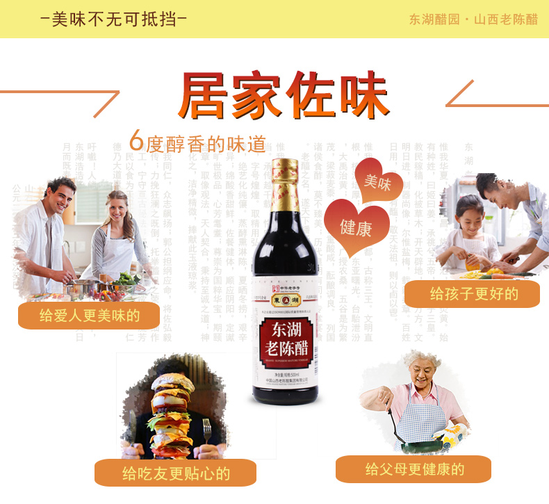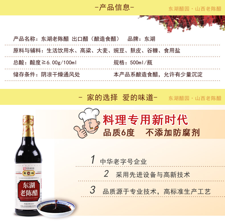 东湖出口老陈醋 500ml*4瓶 组合 6度酸