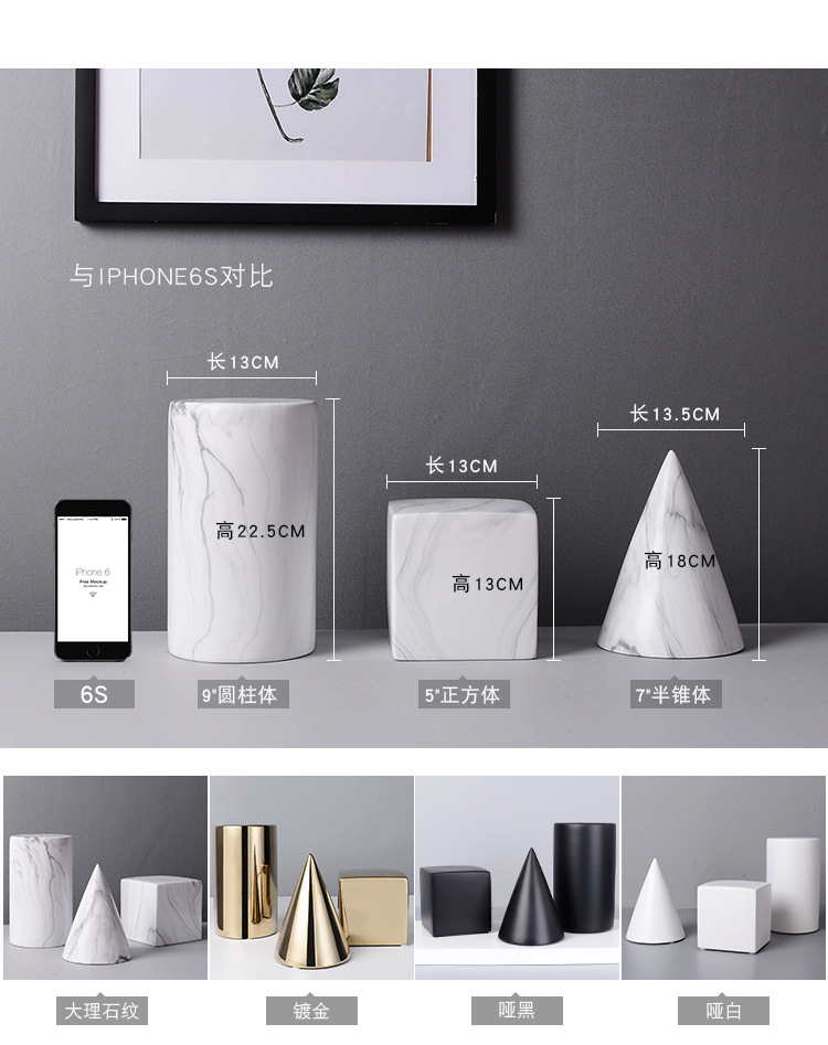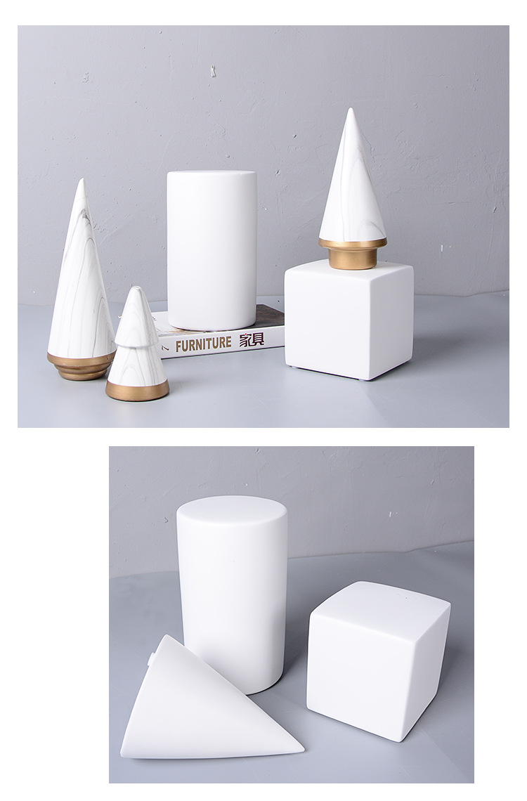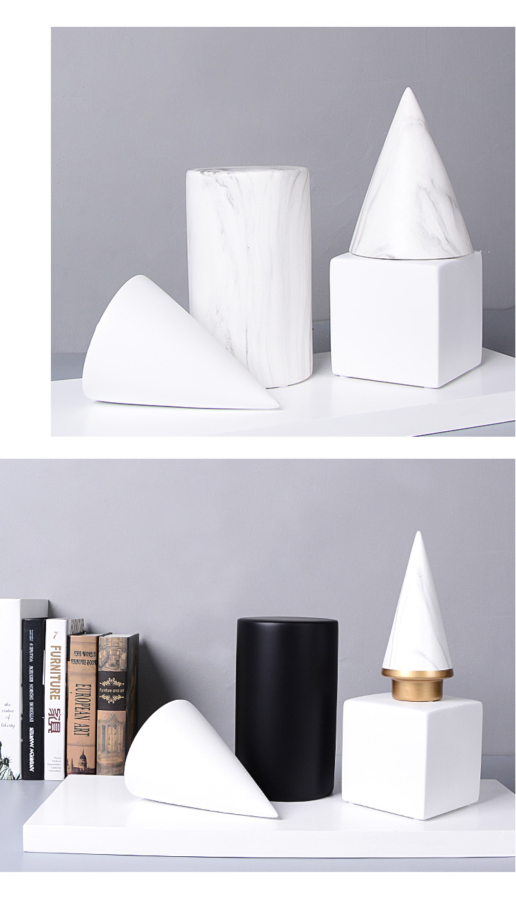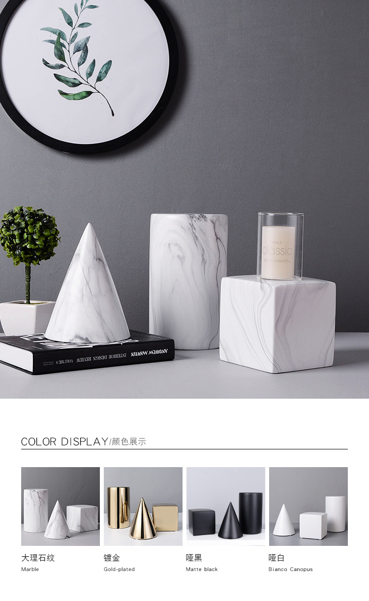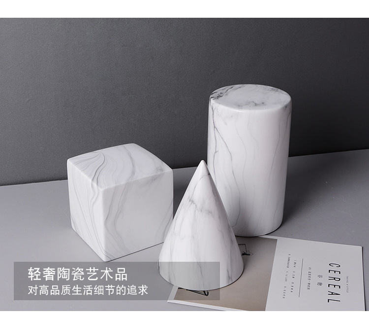 【家居摆件】*几何体样板房客厅酒柜家居饰品大理石纹创意北欧陶瓷摆件现代简约