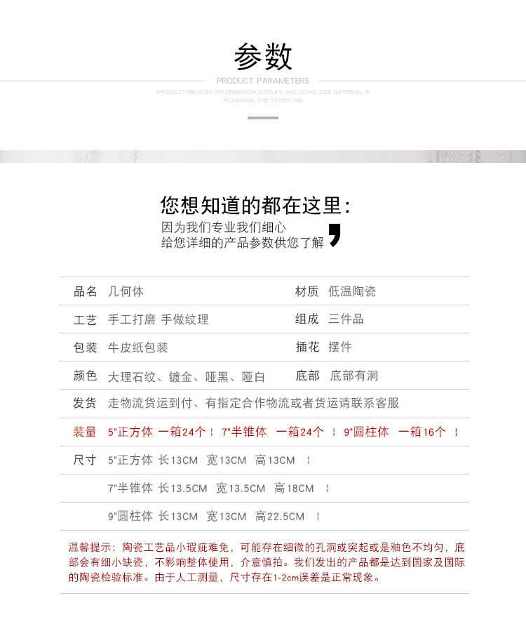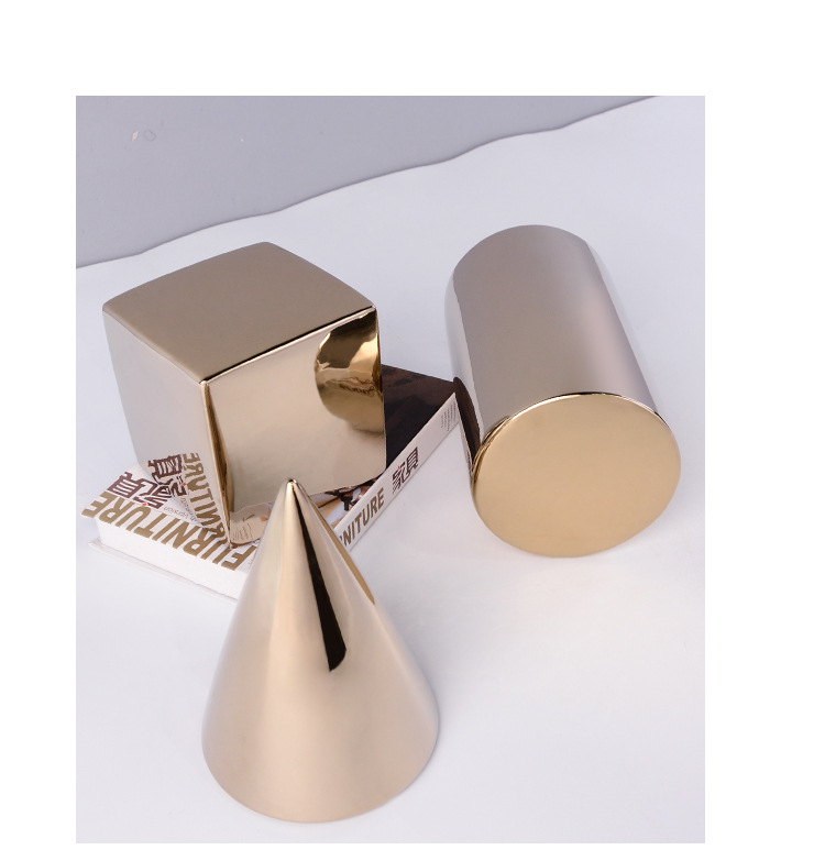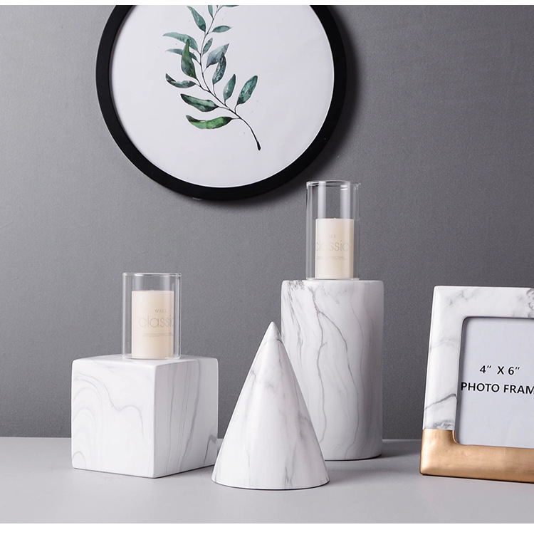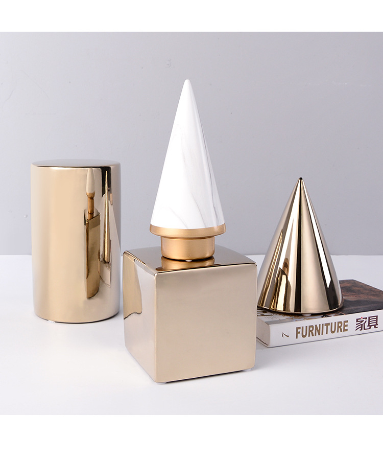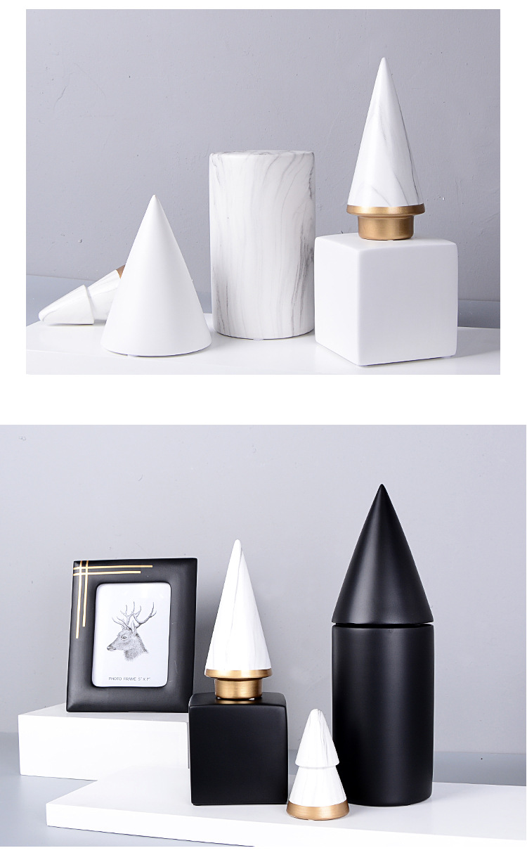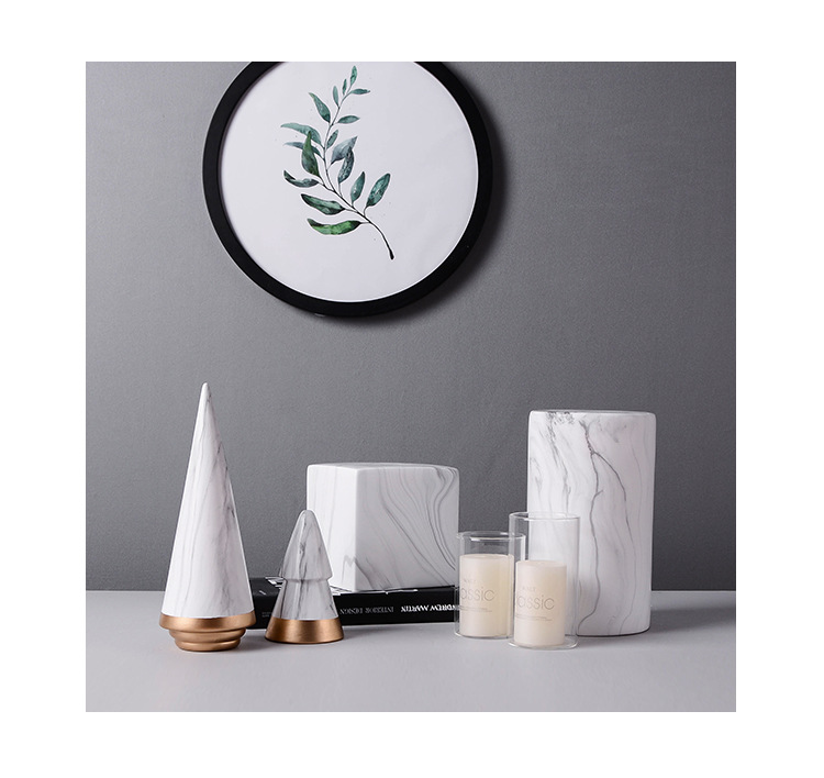 【家居摆件】*几何体样板房客厅酒柜家居饰品大理石纹创意北欧陶瓷摆件现代简约