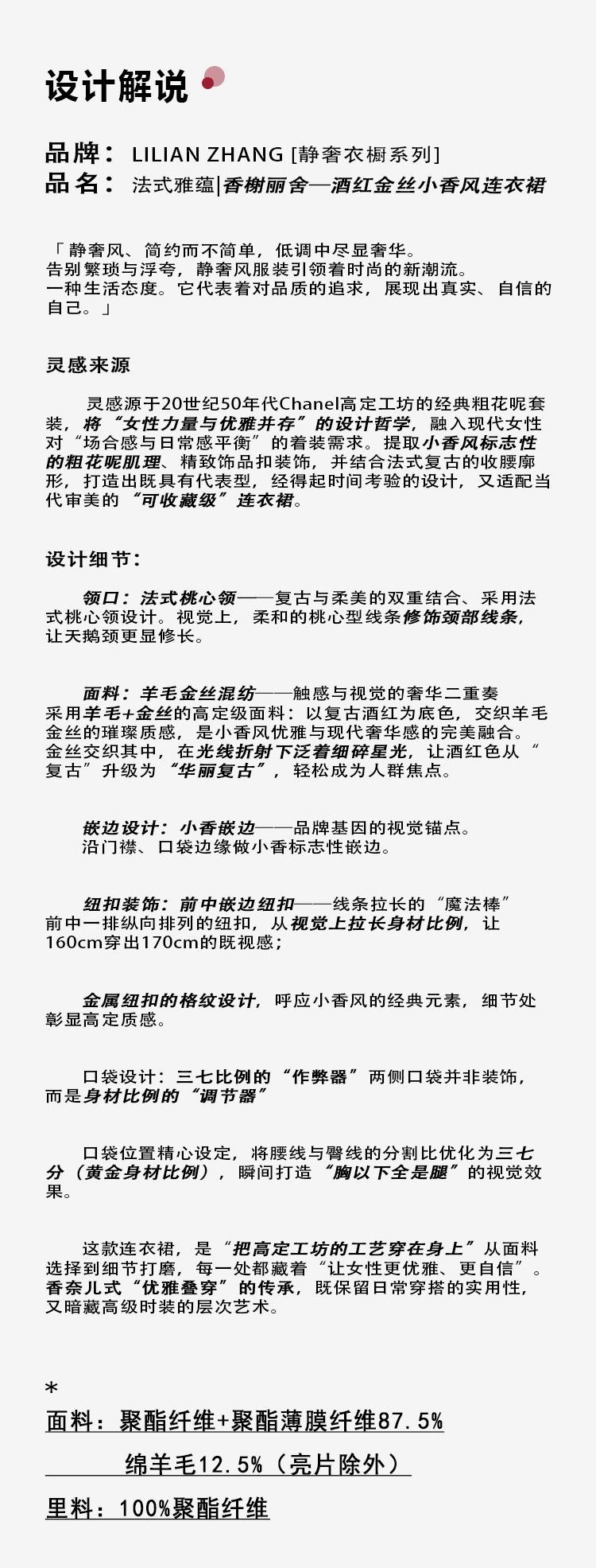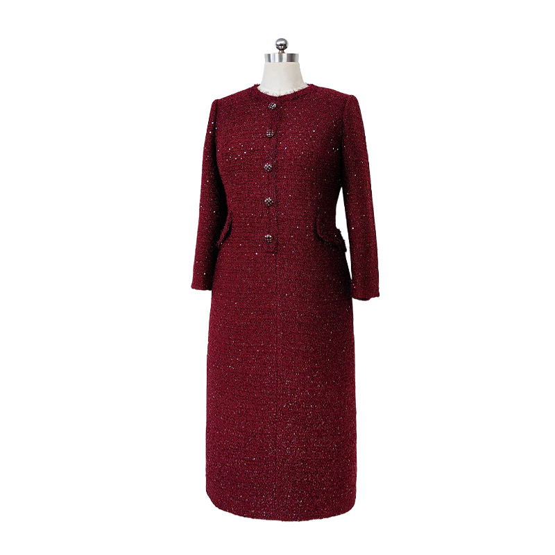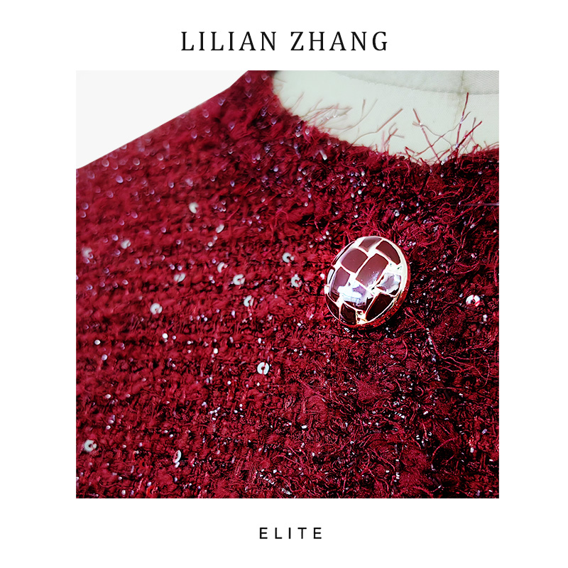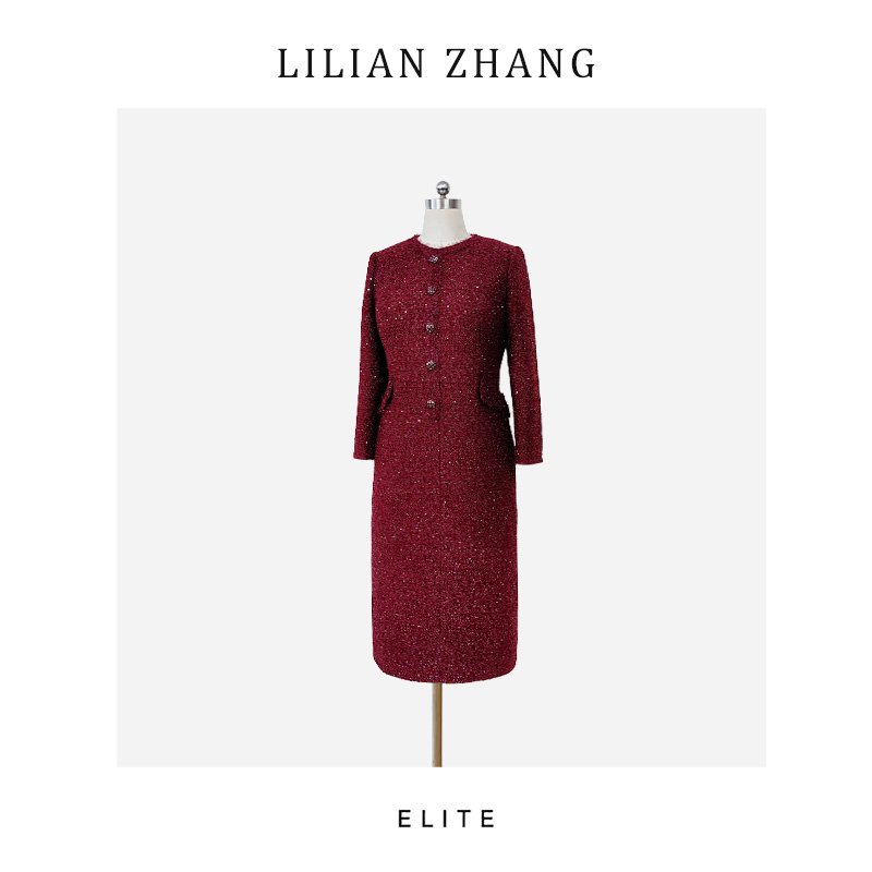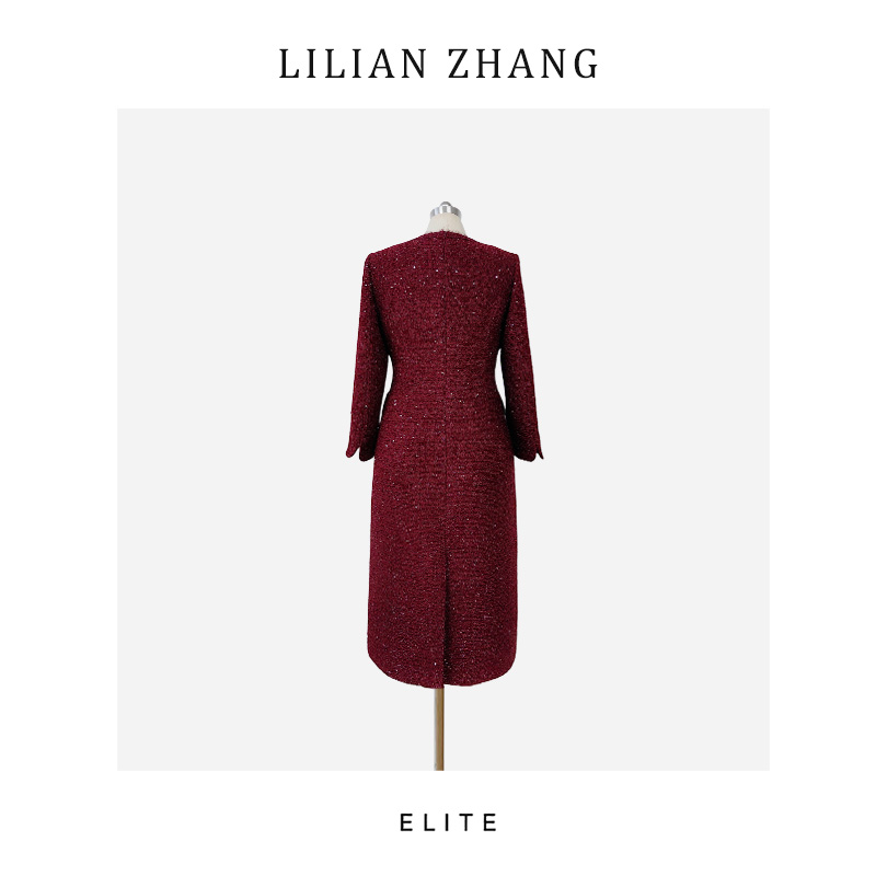 定制静奢风—法式雅蕴—香榭丽舍—高定酒红金丝小香风连衣裙2501217