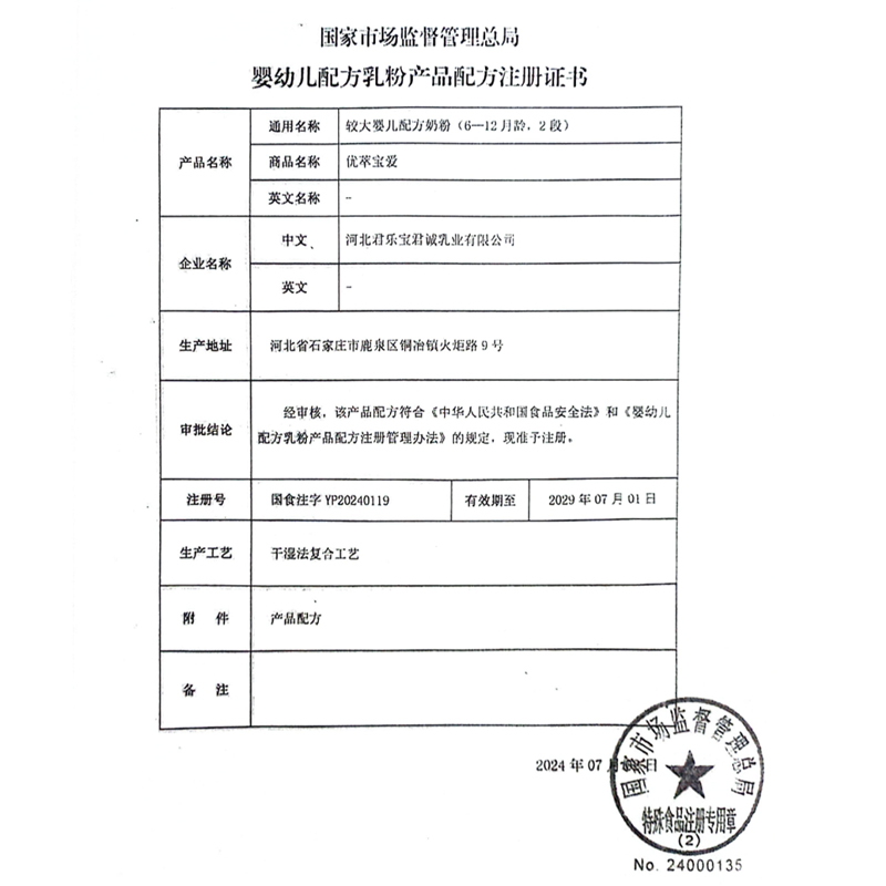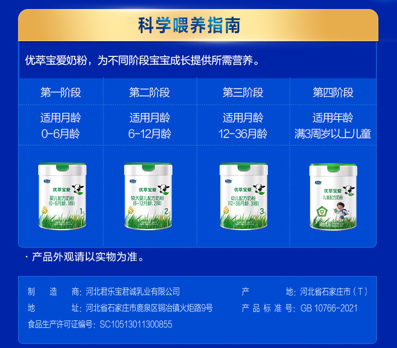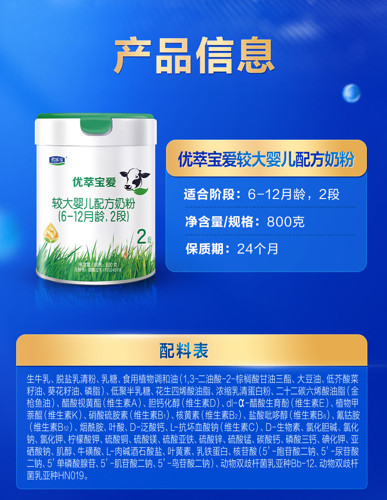 君乐宝优萃宝爱奶粉2段800g(新旧包装随机发货)