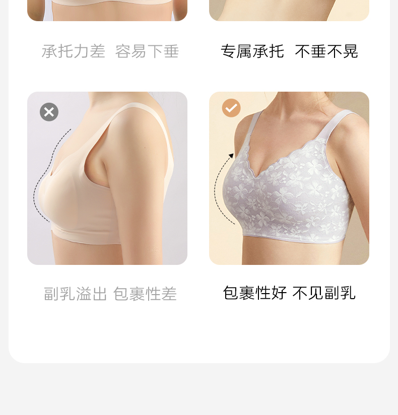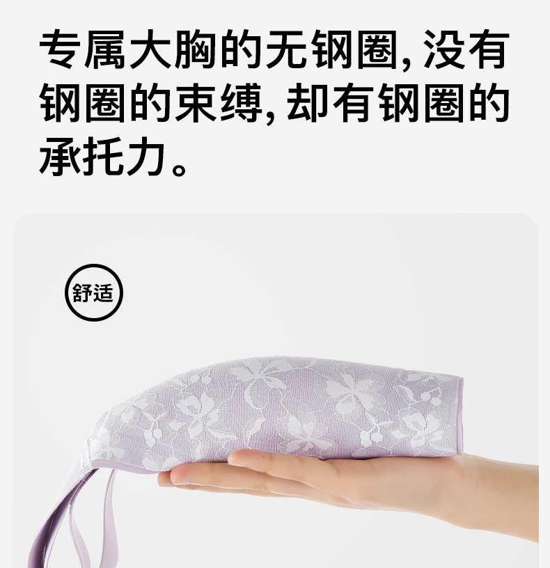 梦芭蒂大胸显小内衣女薄款收副乳大码无钢圈防下垂文胸罩云感托托