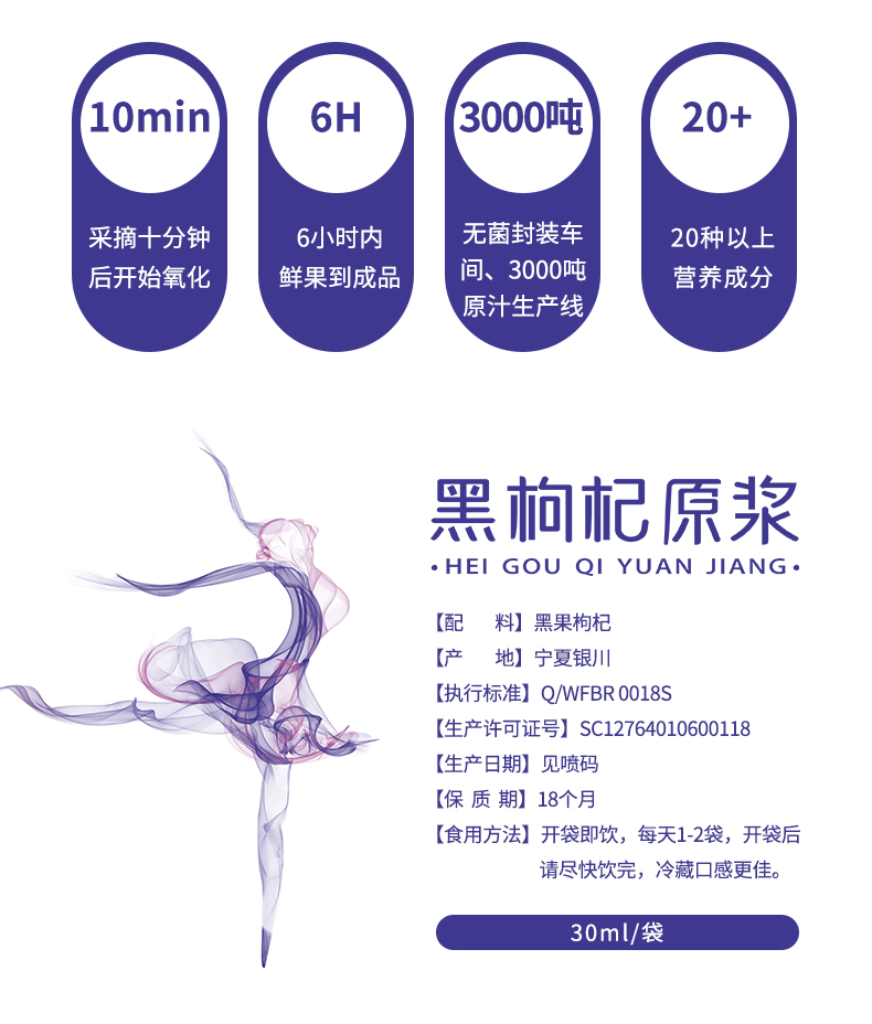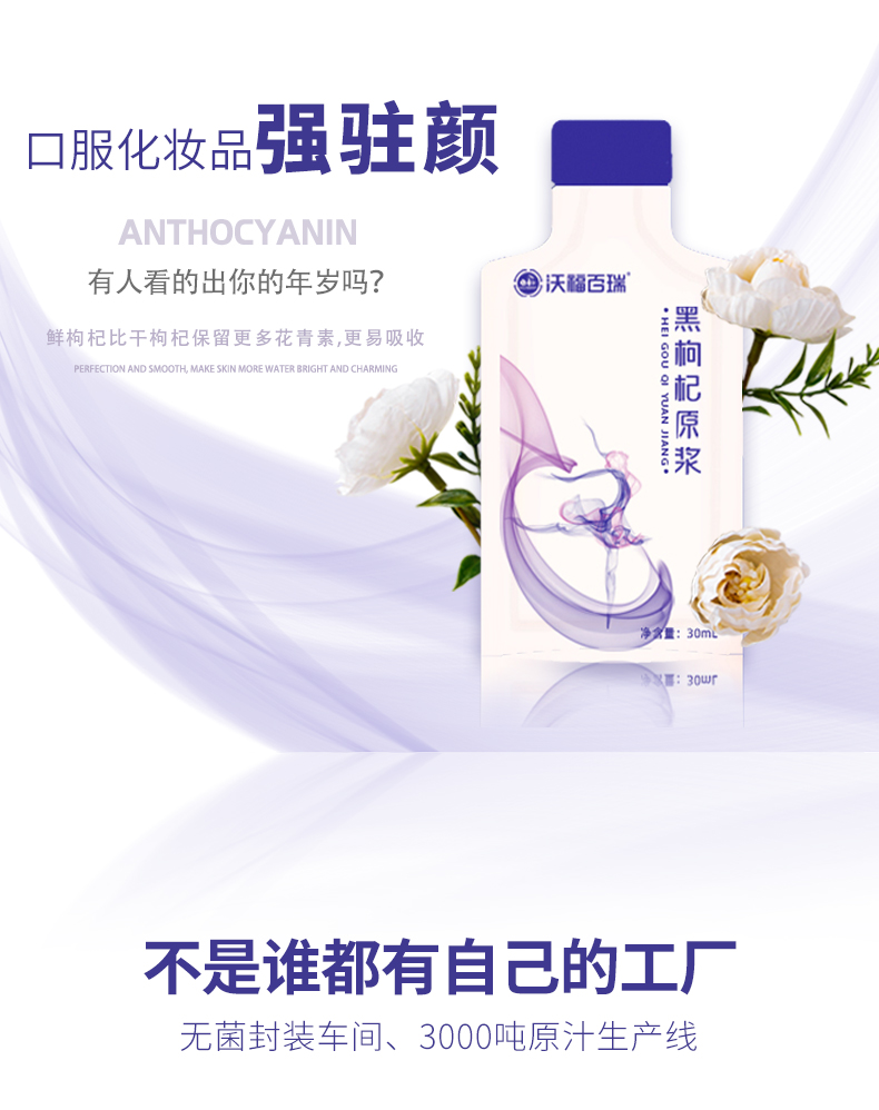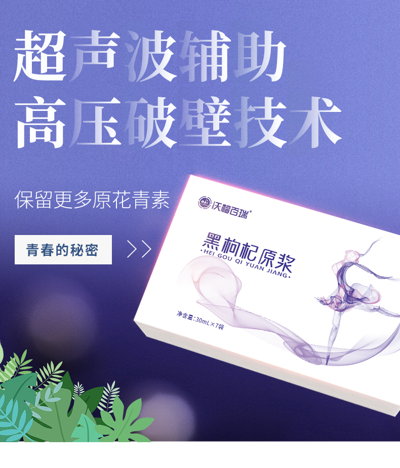 【黑枸杞原浆】沃福百瑞黑枸杞原浆 青海黑枸杞汁 枸杞原液鲜果碰壁30ml*7袋/盒 口服化妆品,锁住你的美!