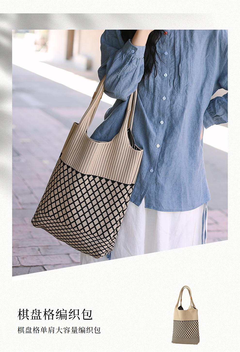 KS016棋盘格单肩大容量编织包