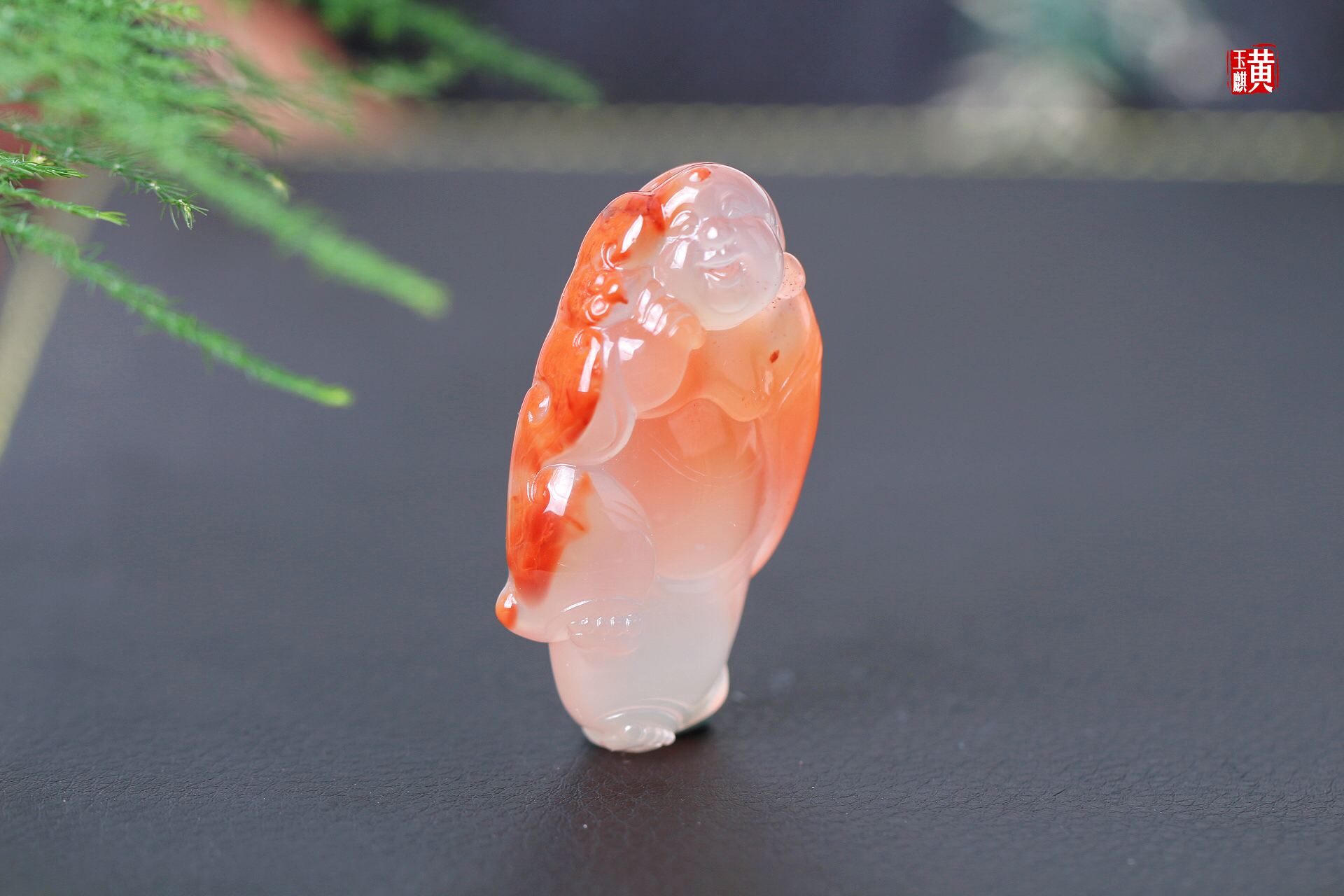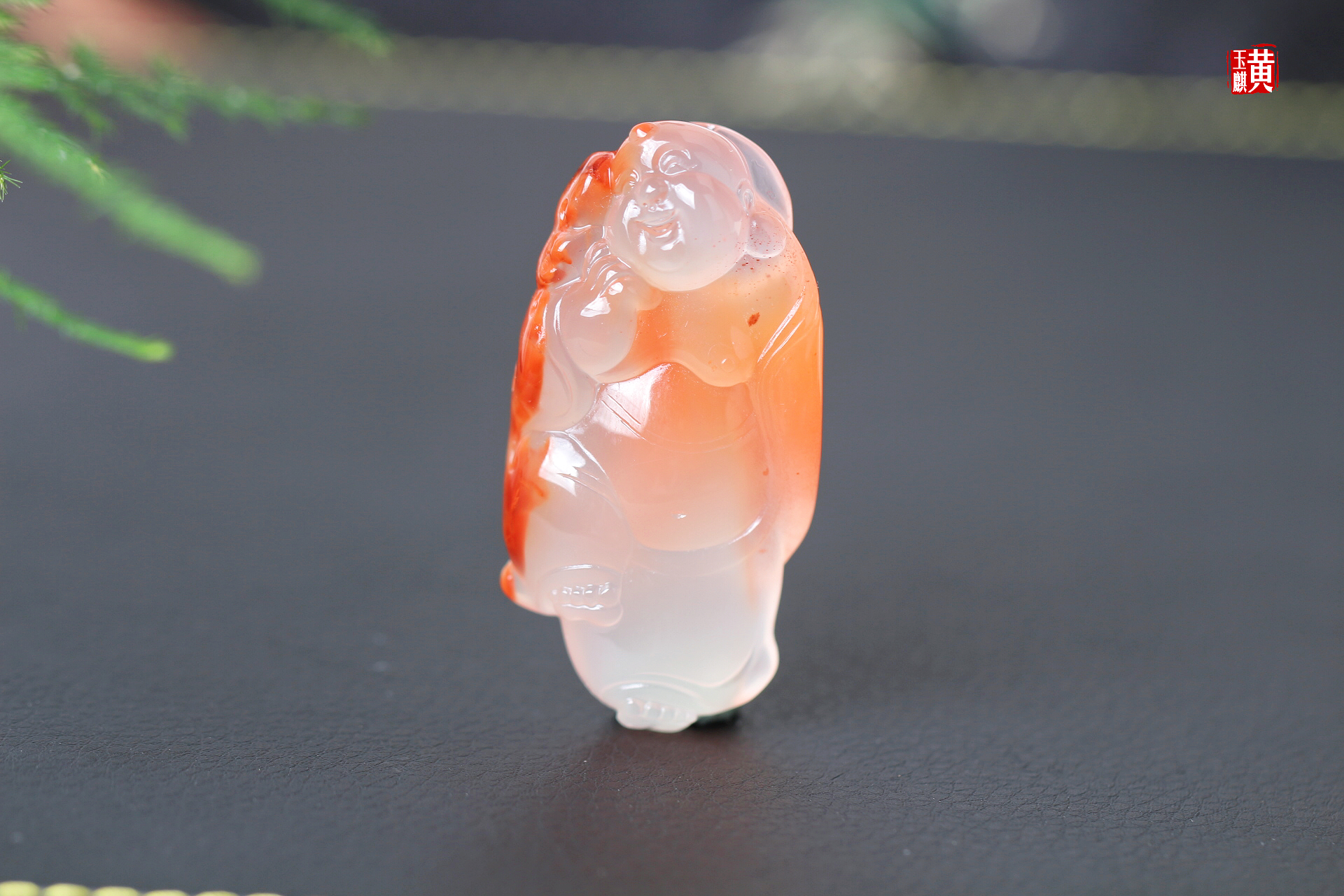 【鸿福齐天】南红冰飘弥勒佛吊坠,配精美挂绳