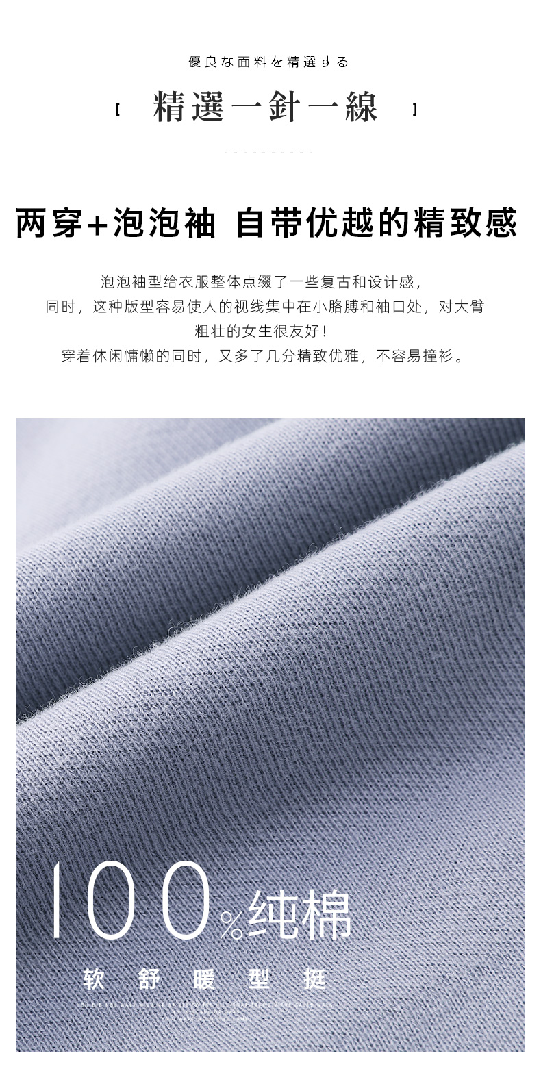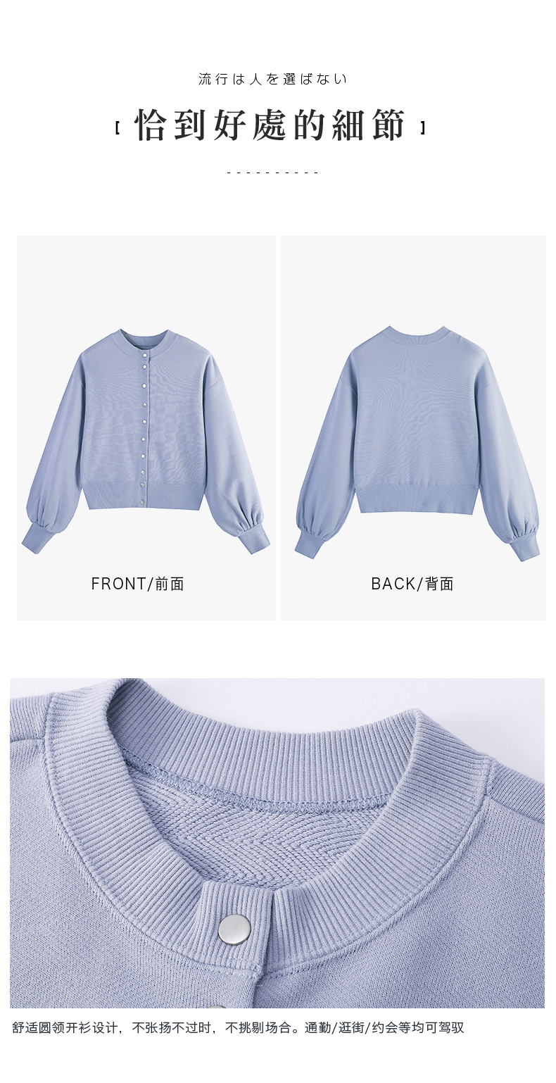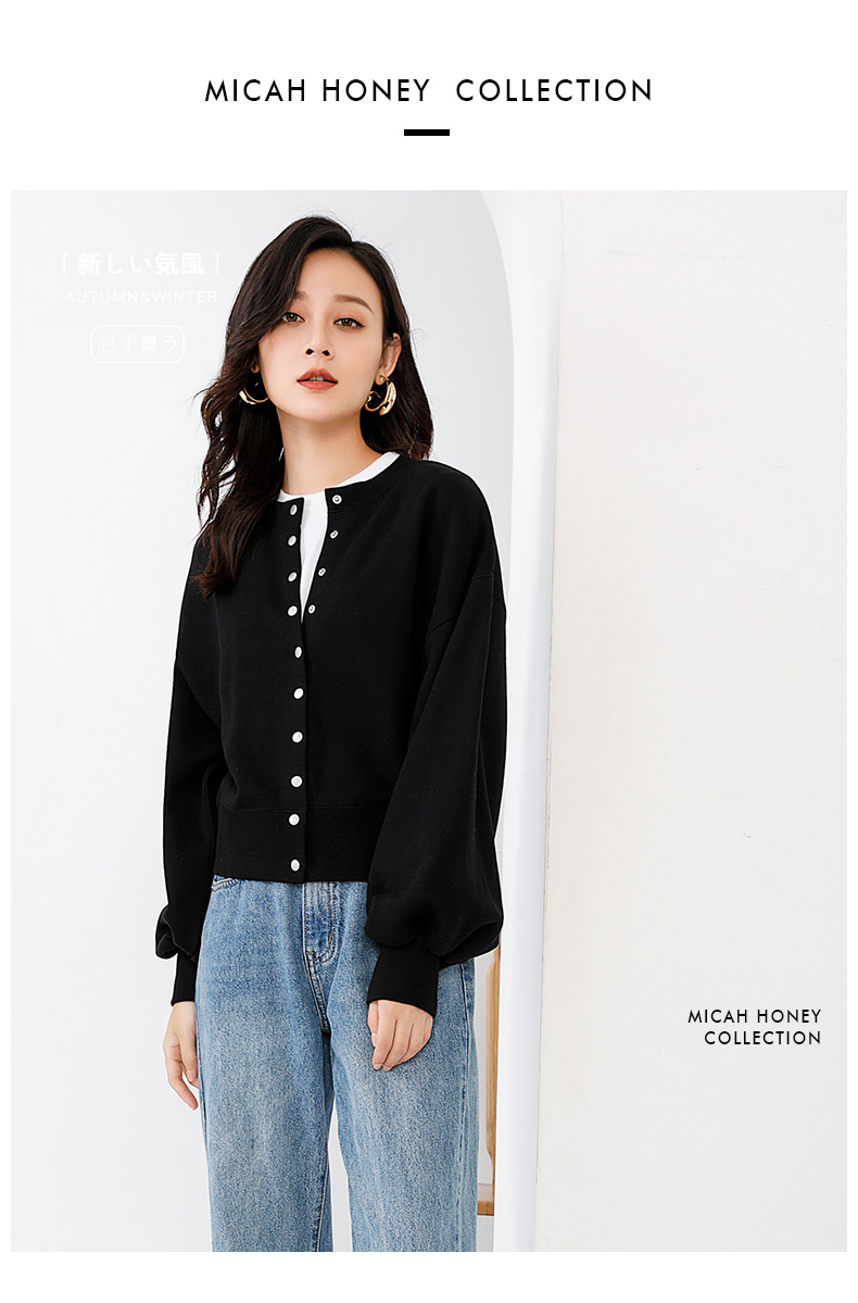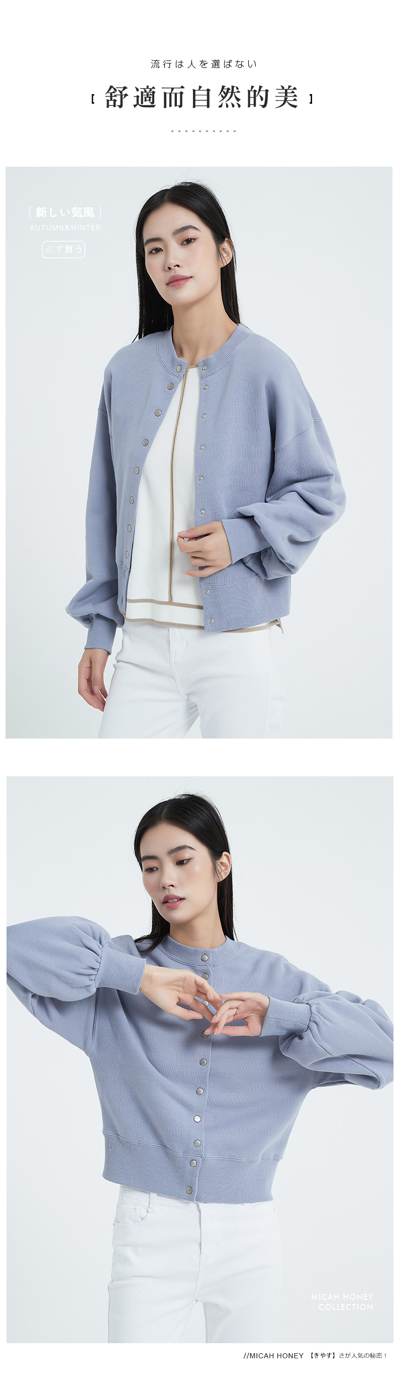 FXQ 米加蜜纯棉女式上衣灯笼袖短款卫衣开衫外套