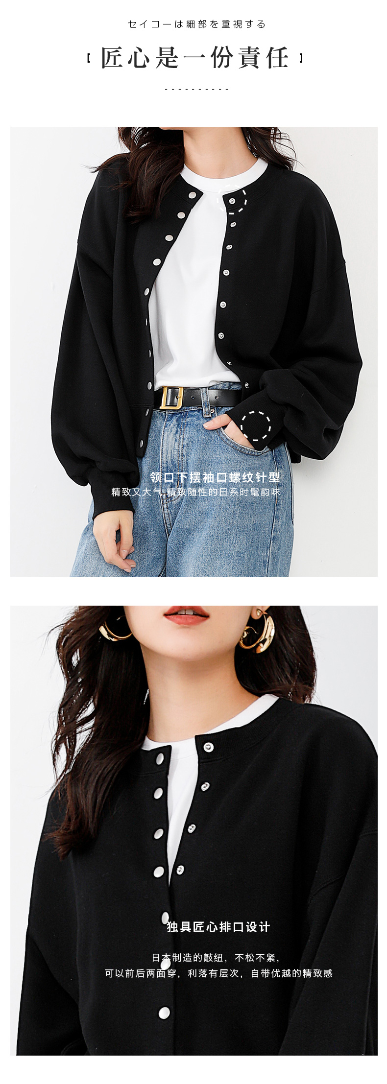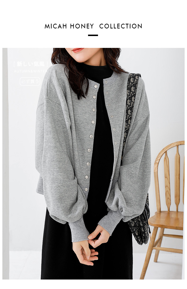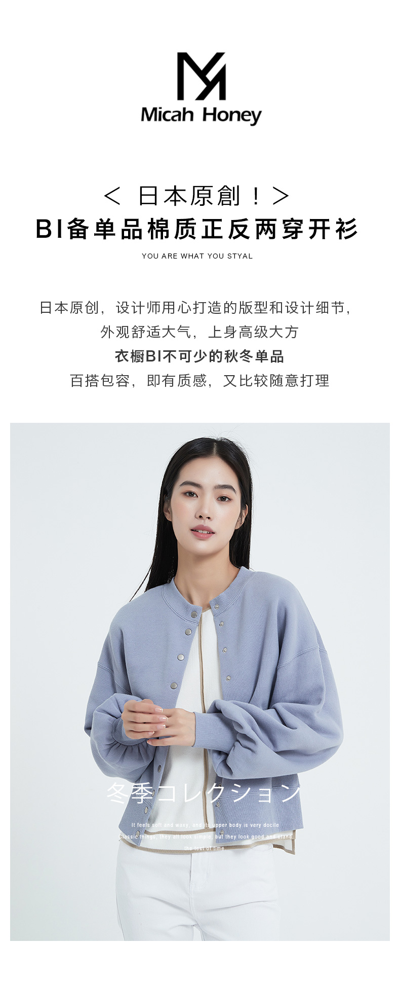 FXQ 米加蜜纯棉女式上衣灯笼袖短款卫衣开衫外套