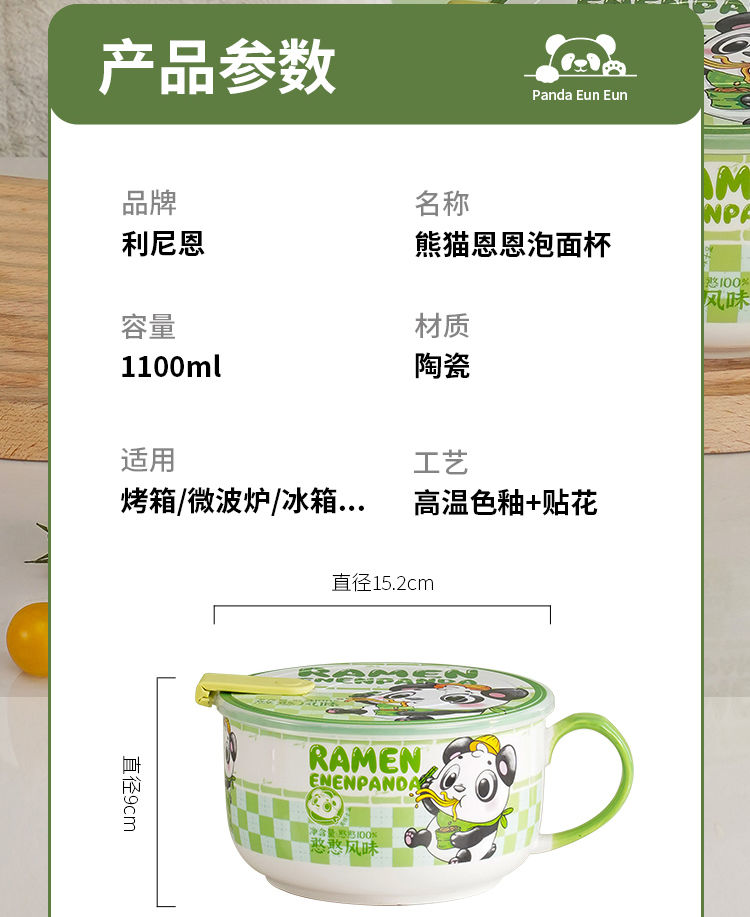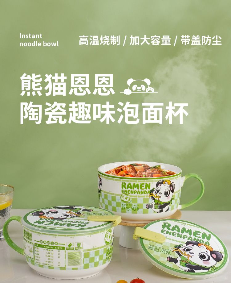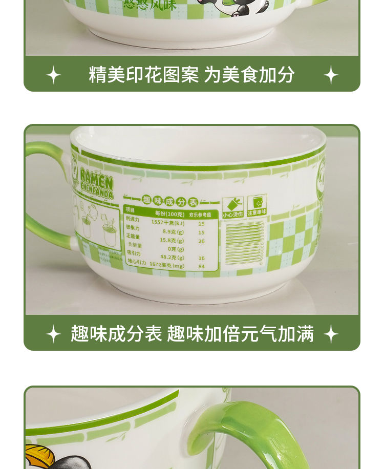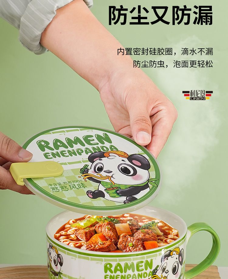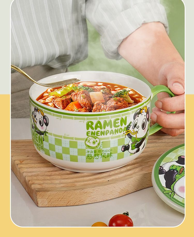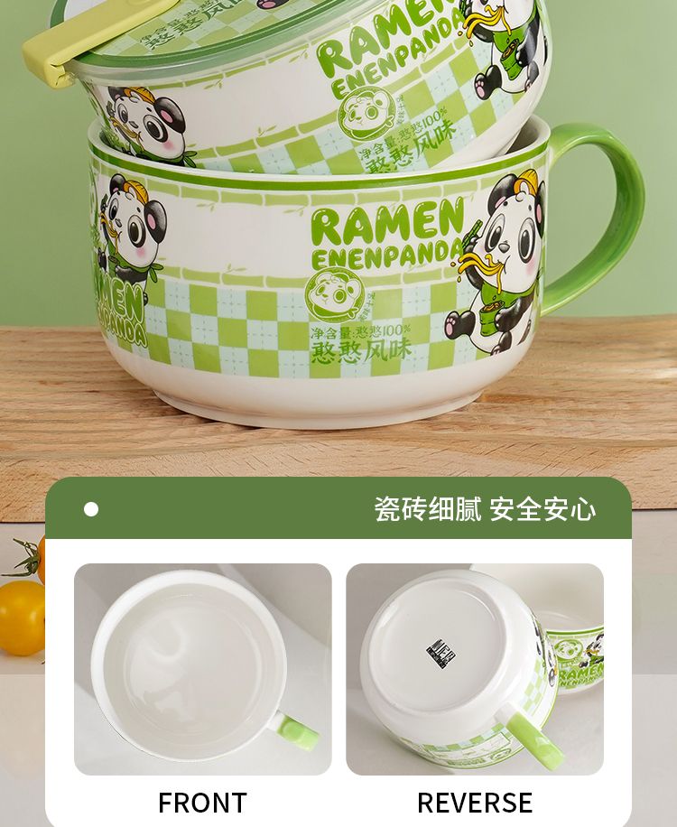 陶瓷泡面碗带盖宿舍用学生高颜值泡面杯可微波炉饭碗食堂打饭专用