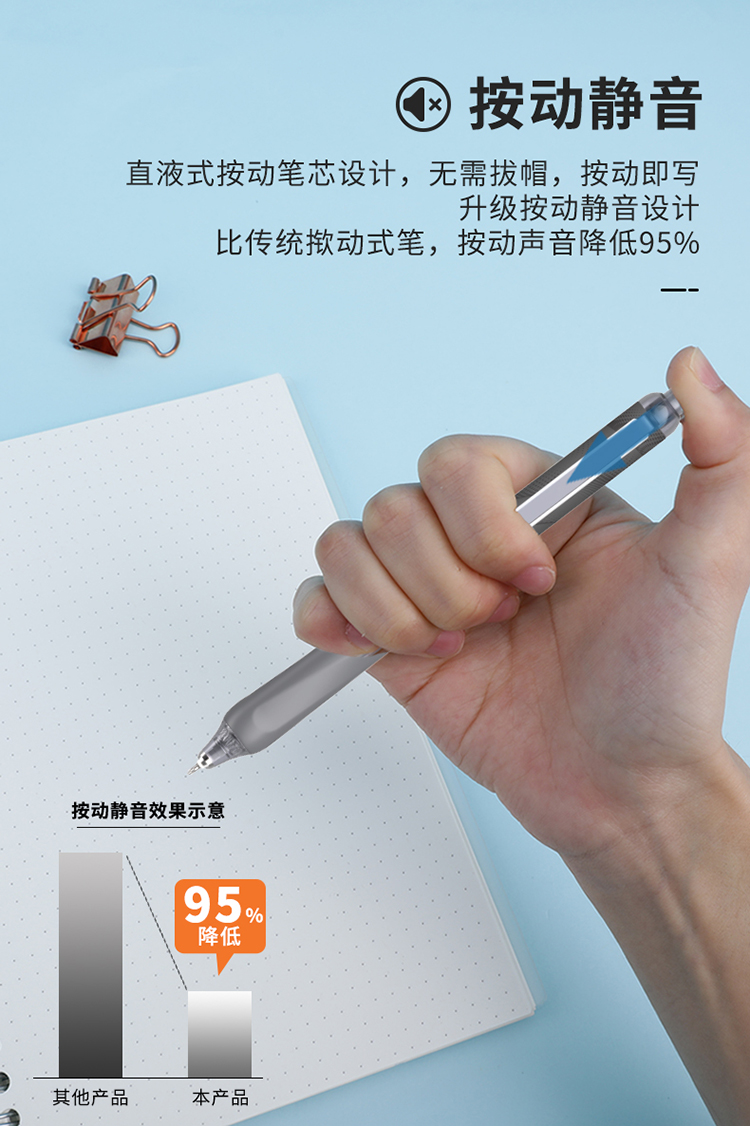 贝发按动静音系列中性笔 12支/盒 (赠10支替换芯)