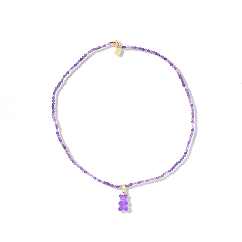 订购4周到|CRYSTAL HAZE-Beaded Nostalgia Bear-紫色小熊 项链(金色环扣)[挪威设计师]
