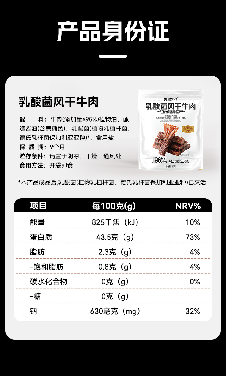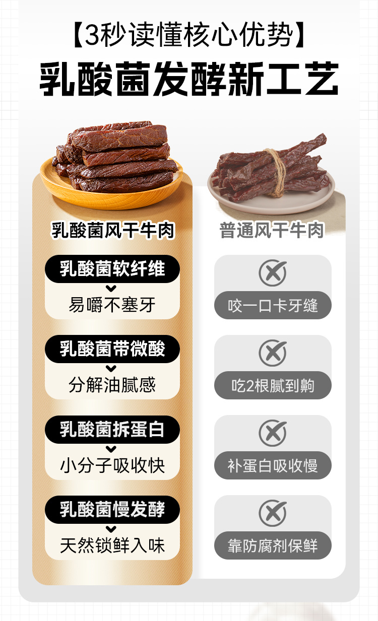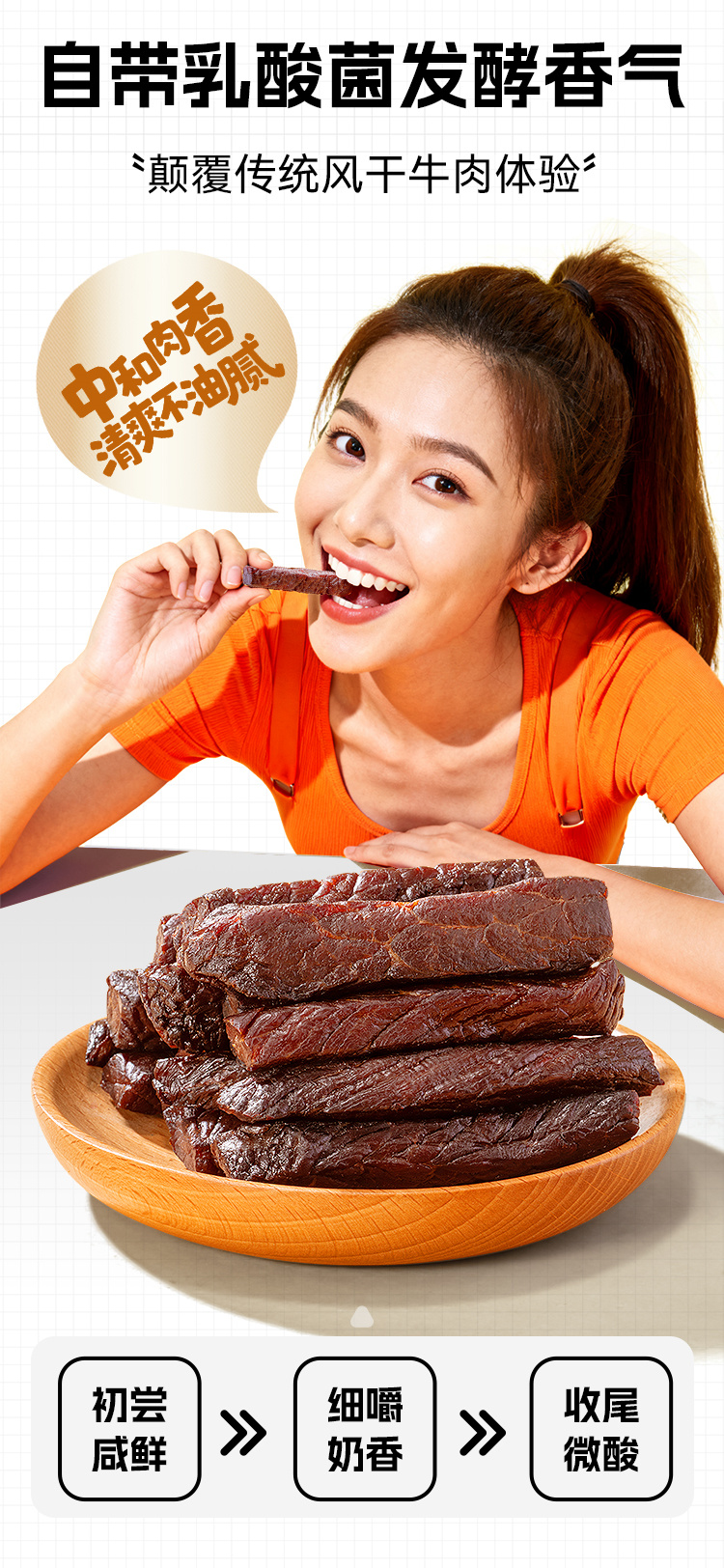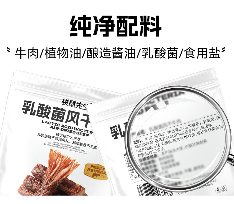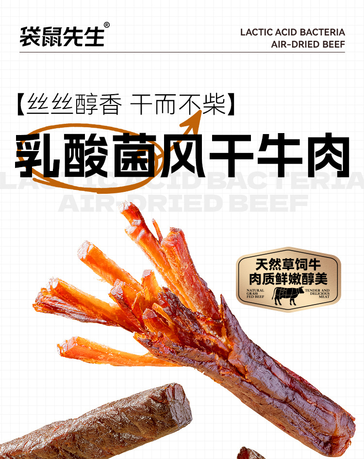 低脂高蛋白【乳酸菌工艺干而不柴 易嚼动 不硌牙】袋鼠先生乳酸菌风干牛肉干200g/袋