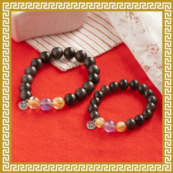 黑曜石紫黄晶手串-男款