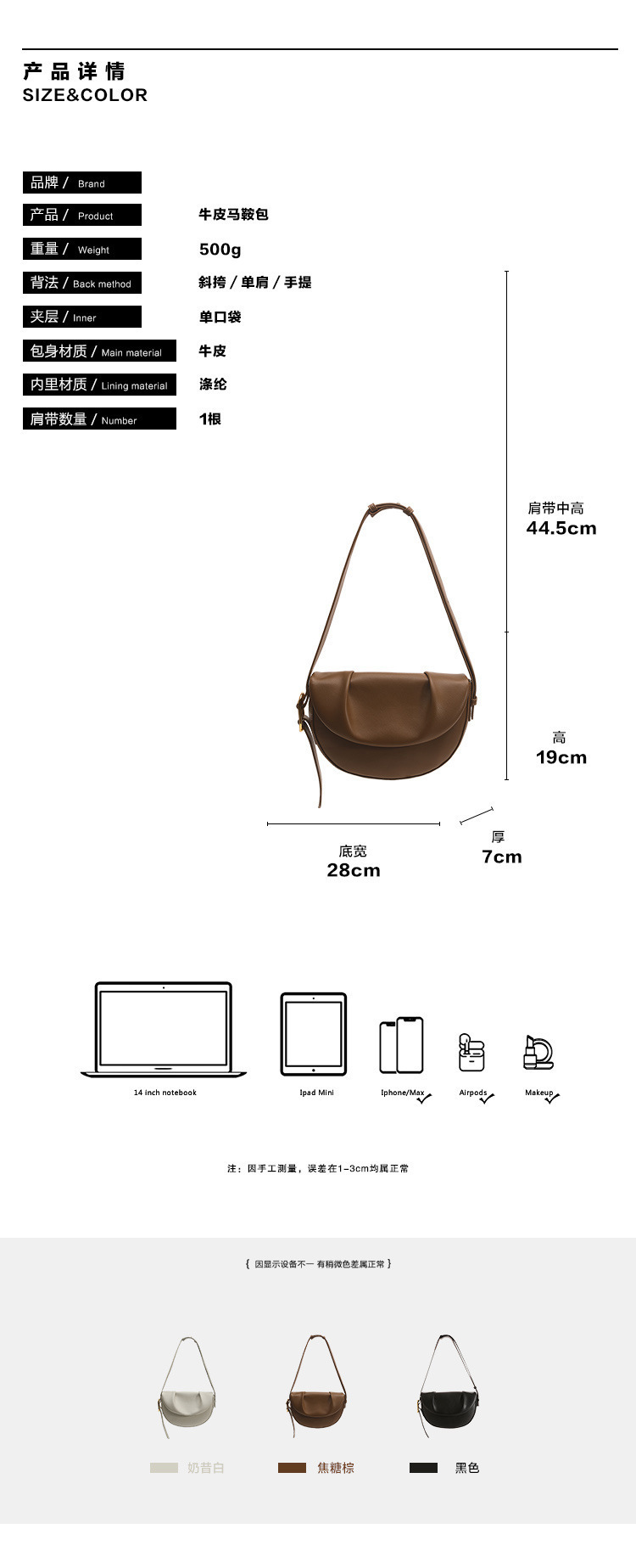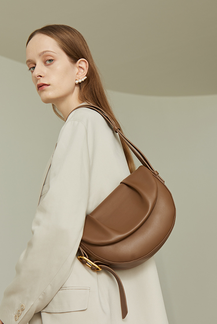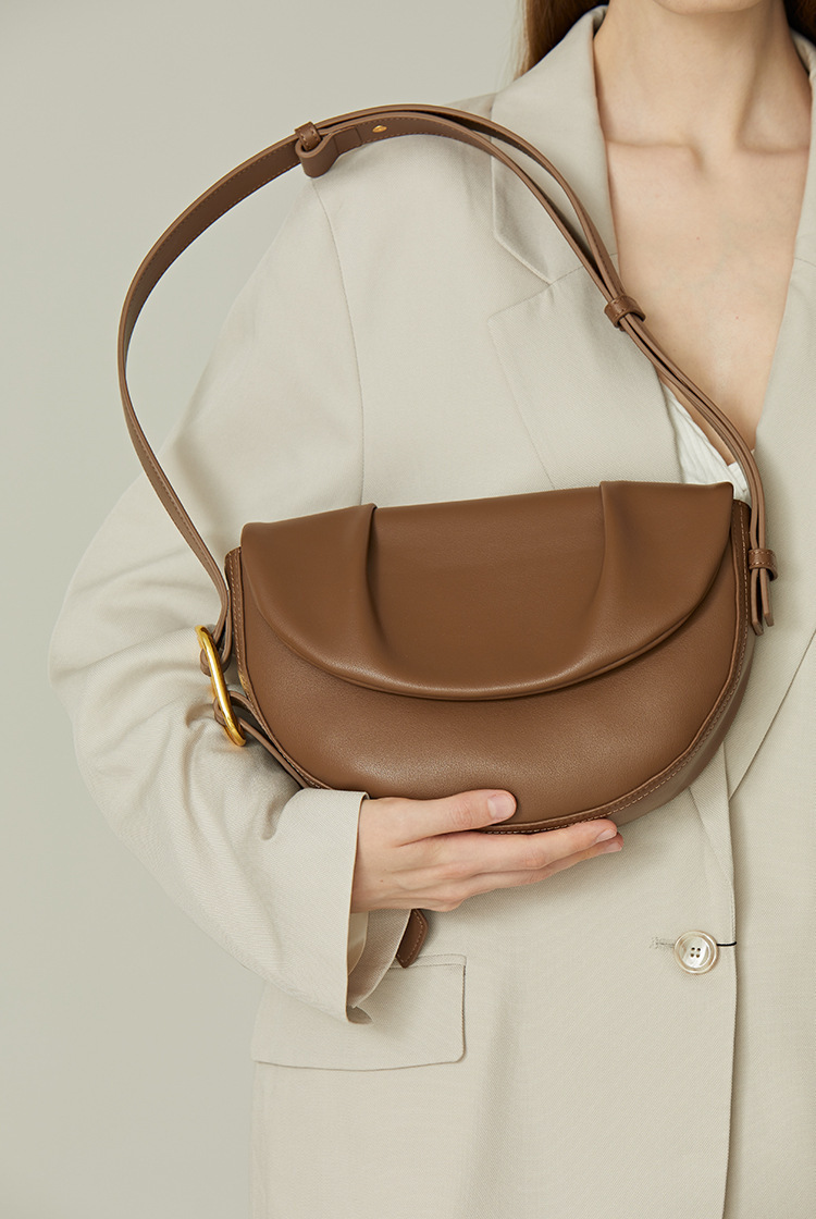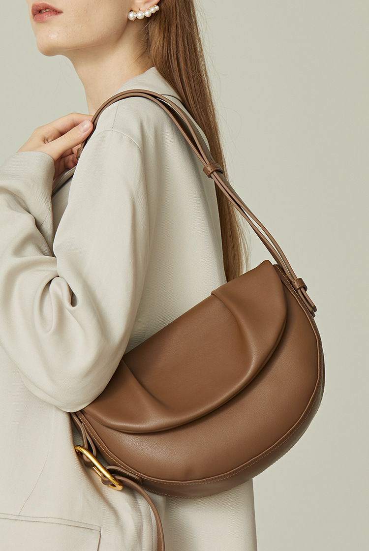 【预售3天】2025新款百搭单肩包小众斜挎包褶皱腋下马鞍包女9213-D
