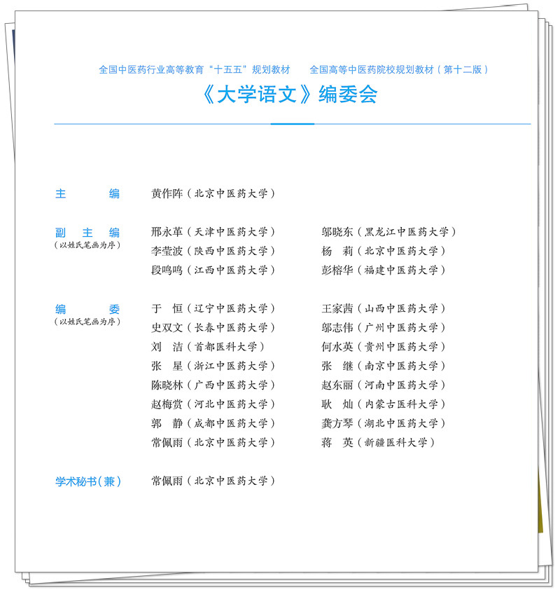 大学语文 黄作阵 主编(第四版)全国中医药行业高等教育十五五规划教材第十二版书 中国中医药出版社